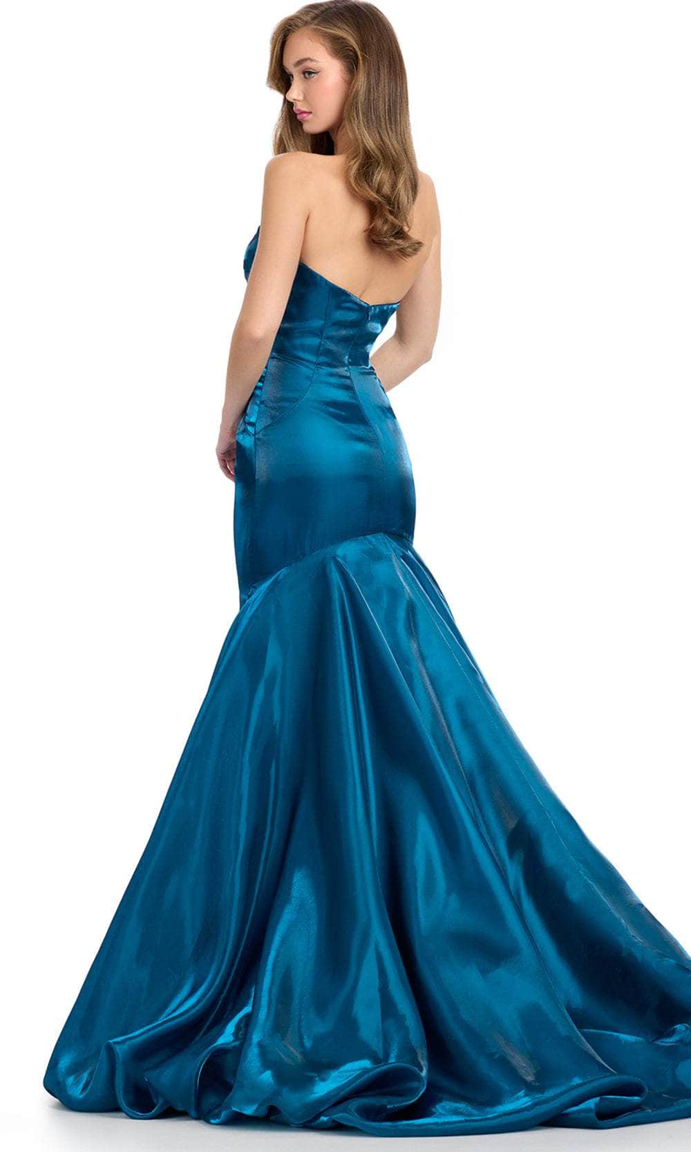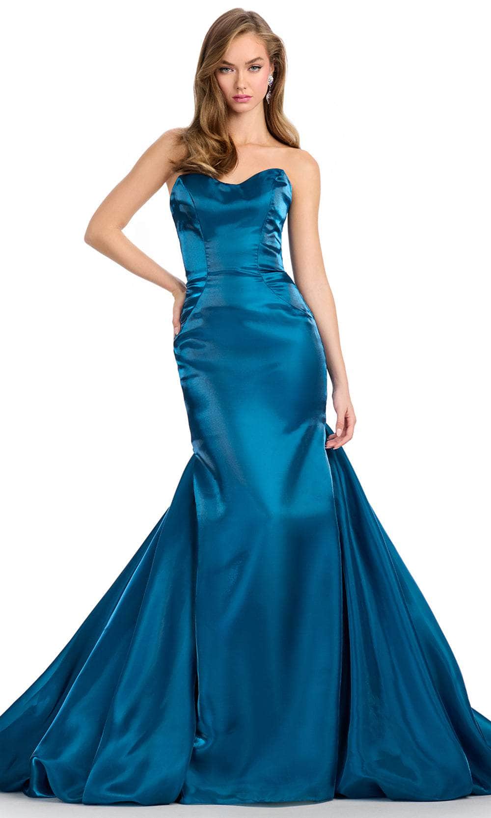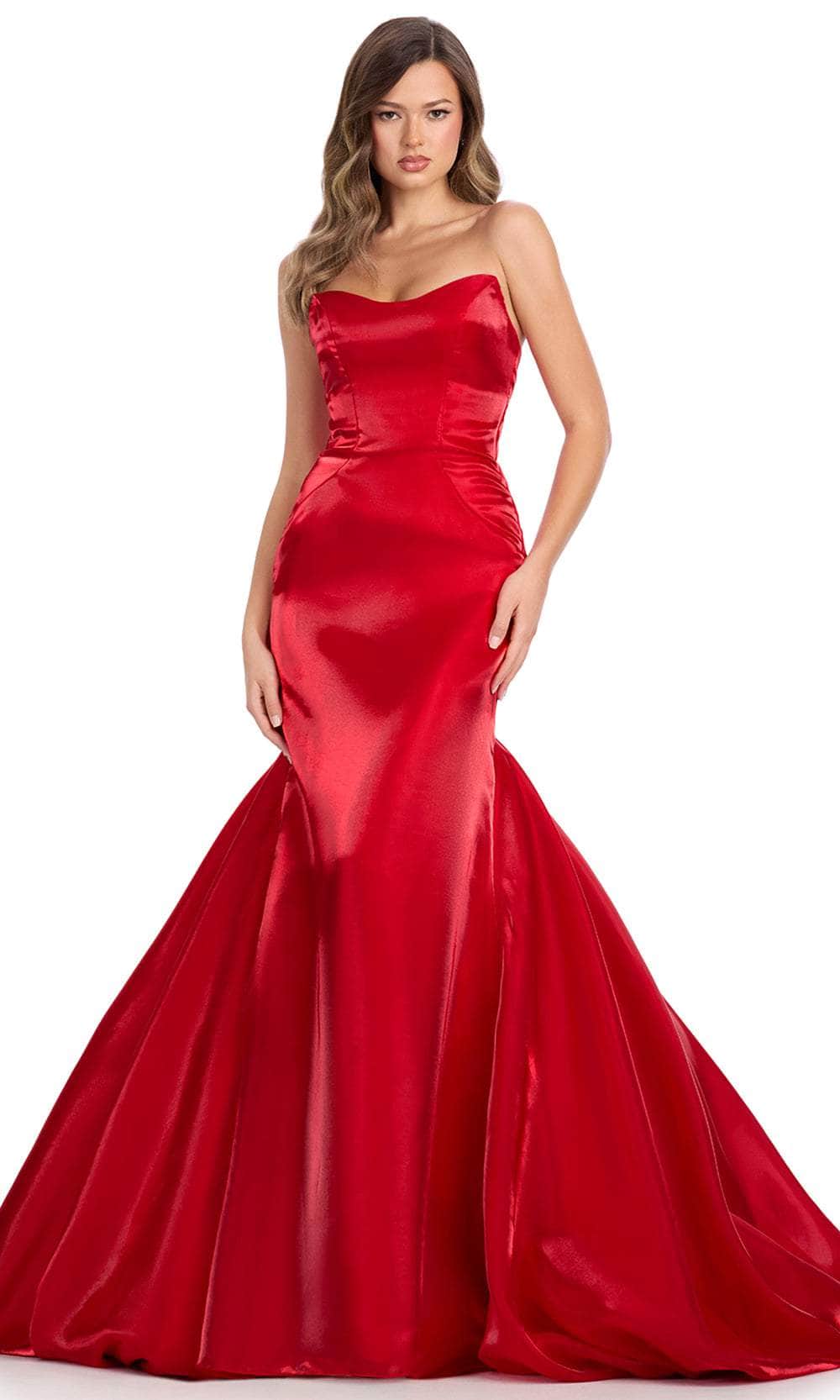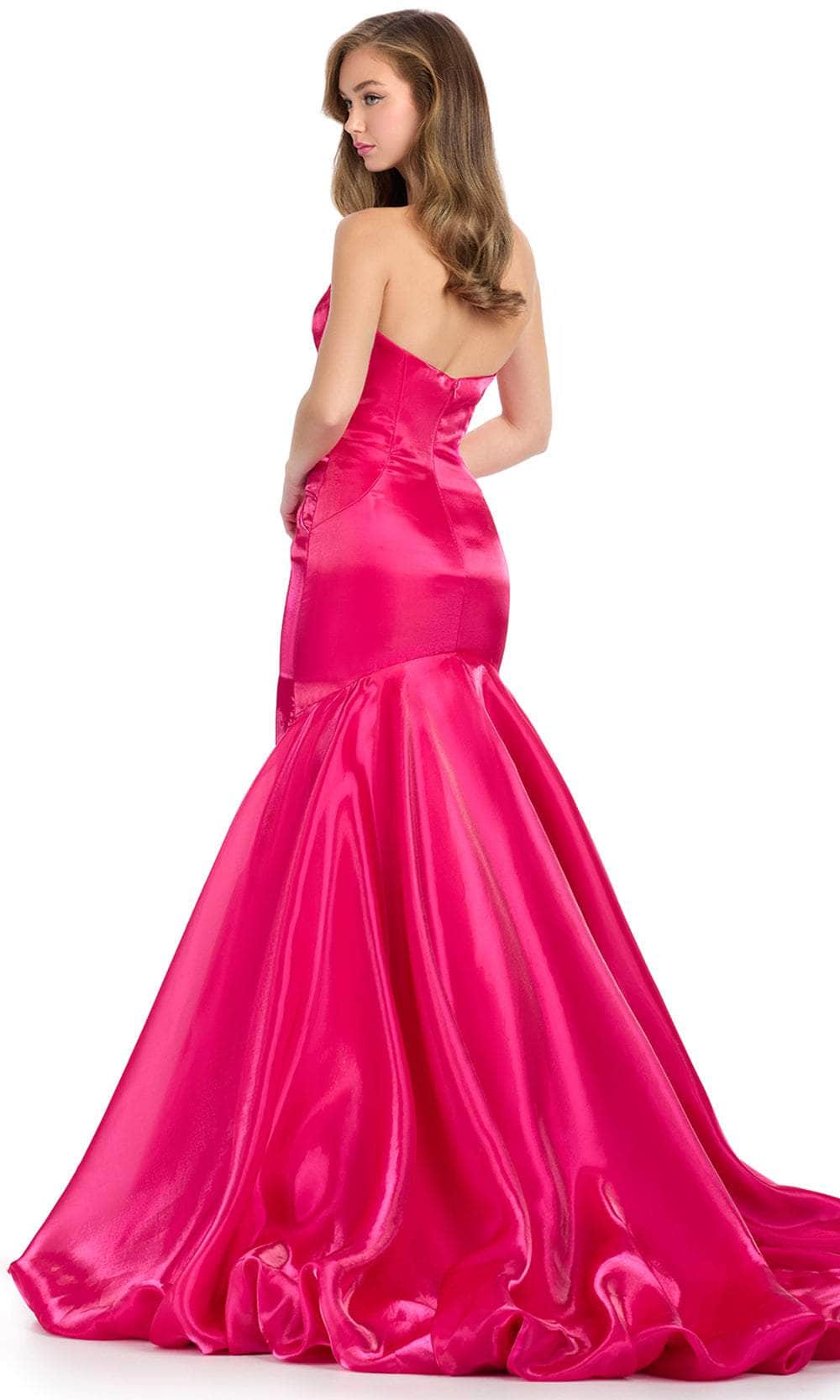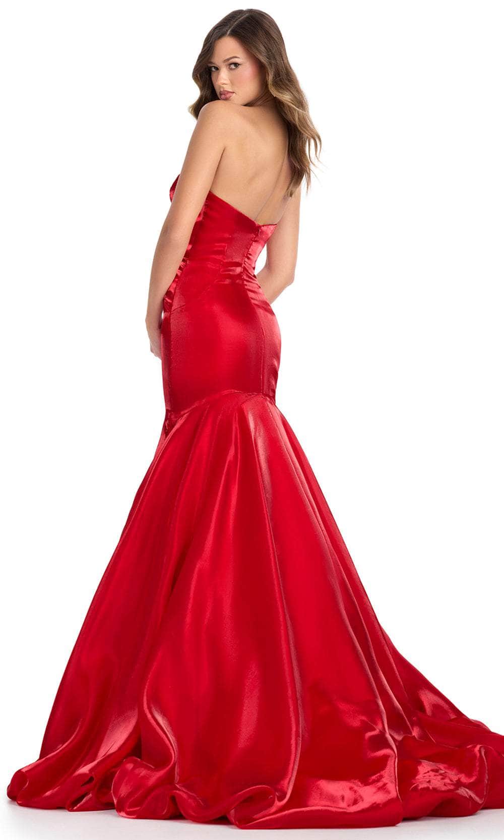 Set the stage for an unforgettable evening in this Ashley Lauren 11996 masterpiece. This satin dress features a strapless design and a sweetheart neckline that elegantly frames your shoulders and collarbones. As you turn, the back offers a hint of sultry charm with its open design and concealed zipper closure. The mermaid skirt guarantees to steal the hearts with its ruffle pick-ups that flare dramatically and a sweep train that glides behind you. This Ashley Lauren 11996 creation is the perfect choice for any grand occasion and red-carpet moments. Models are wearing Fuchsia, Peacock, and Red colors.