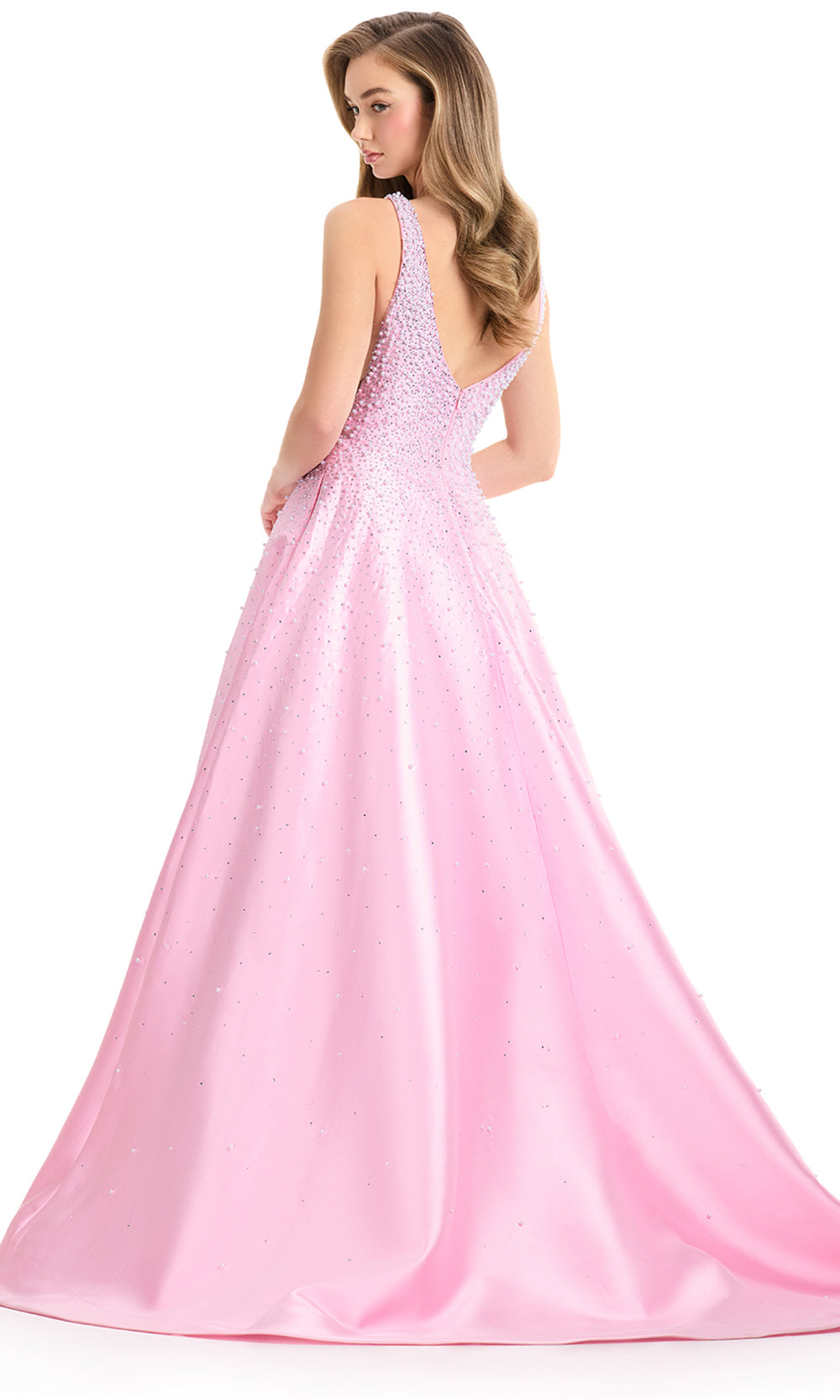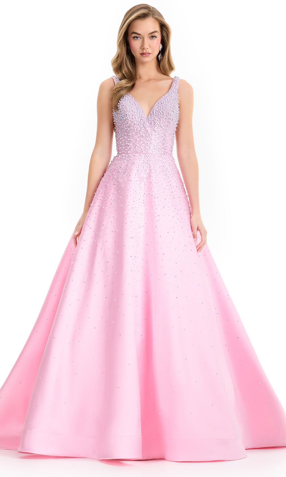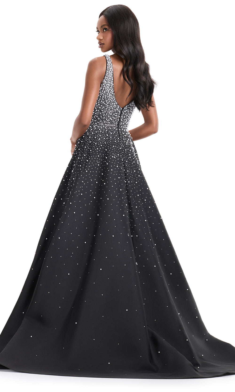 Exuding timeless poise, Ashley Lauren 12160 is a dress that brings an air of classic refinement to every formal setting. Designed with a deep v-neckline and structured bodice, it transitions seamlessly into a voluminous A-line skirt that moves gracefully with each step. Intricate embellishments of heat set stones and pearls create a delicate shimmer across the silhouette, adding depth and texture. A modern choice for prom or evening events, Ashley Lauren 12160 celebrates elegance with radiant artistry. Models are wearing Black, Ice Pink, Ivory, Sky, and Yellow colors.