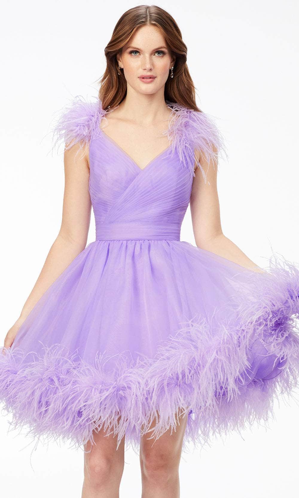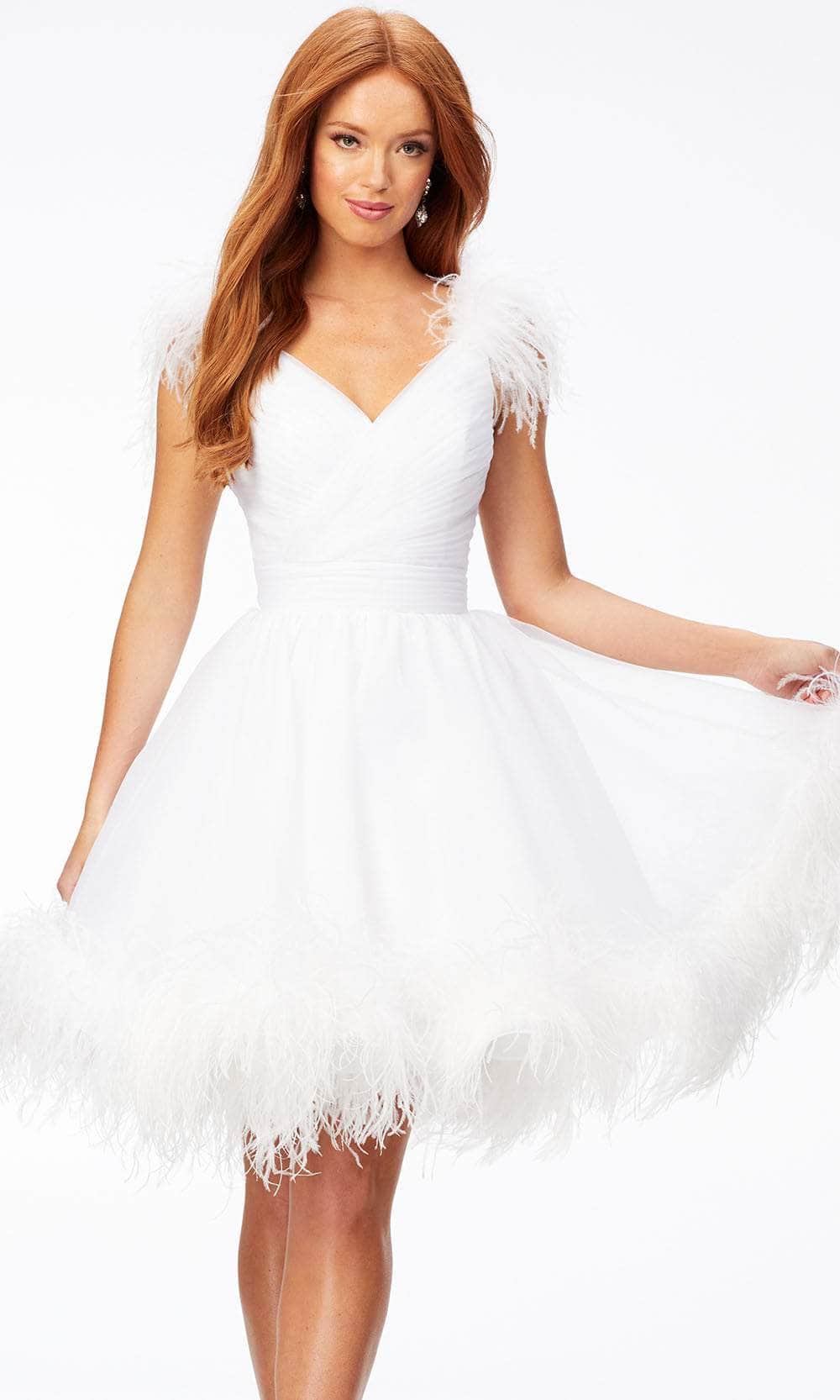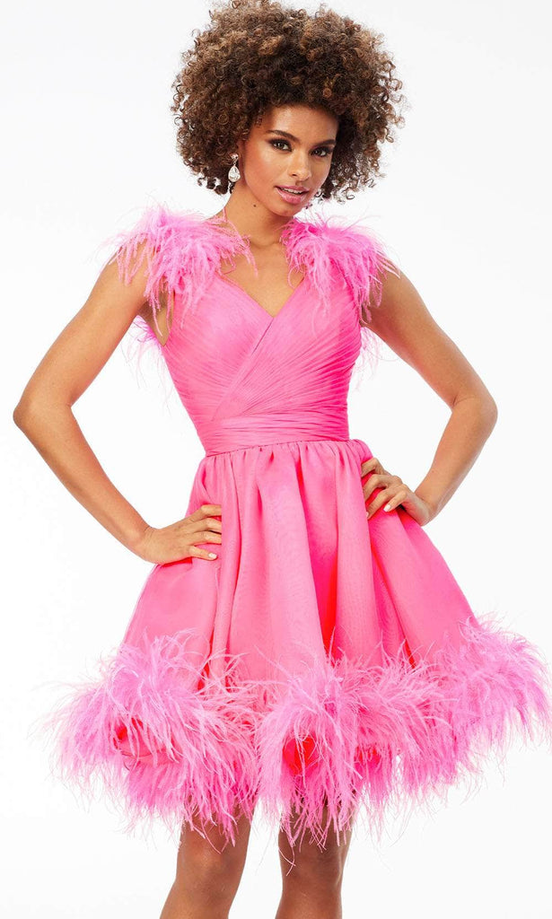 Ashley Lauren 4544 - V-Neck Feathered Cocktail Dress