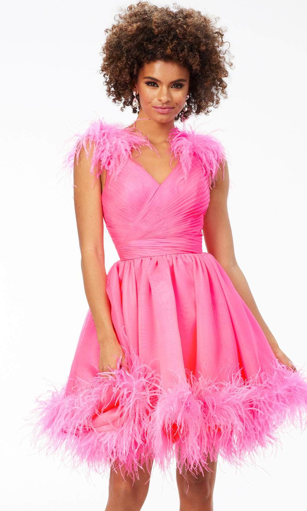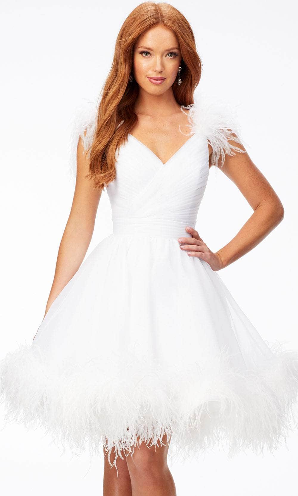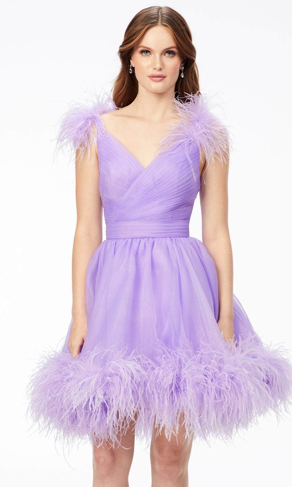Ashley Lauren 4544 - V-Neck Feathered Cocktail Dress