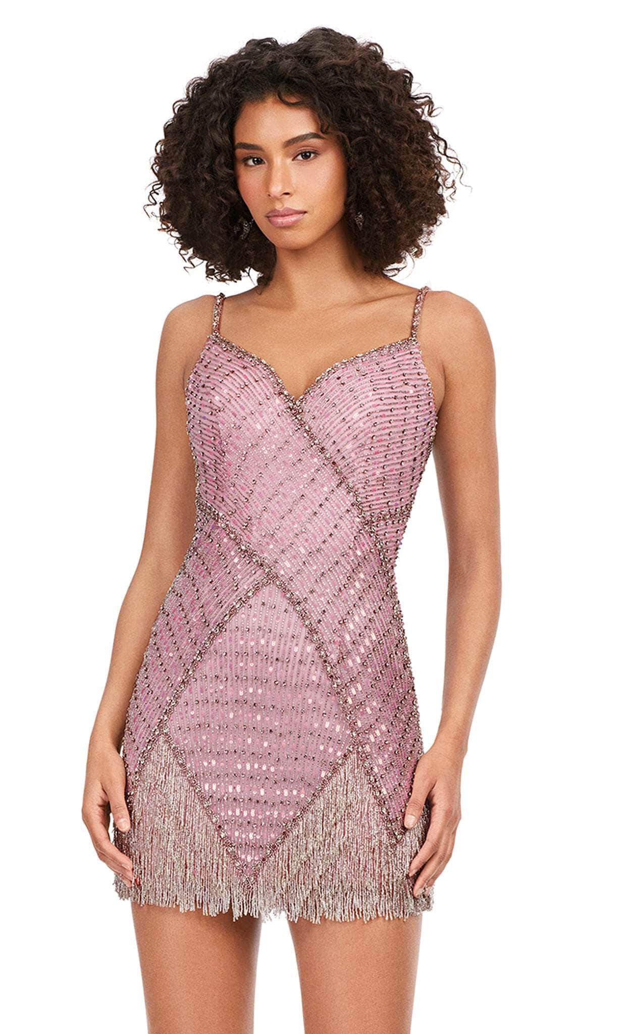 Be the delight of everyones eyes in Ashley Lauren 4593. This dress is both sweet and sassy, with a sheath silhouette that flatters your figure by highlighting your curves. The fitted bodice and skirt are perfect for showing off your shape, while the sweetheart neckline adds a romantic touch to the overall look. The sleeveless design is modern and fresh, while the square back is sleek and sophisticated. The fringe hem adds a playful and flirtatious touch to the mini dress. With a back zipper for ease of wear, this dress by Ashley Lauren 4593 is perfect for any fun and flirty occasion that you may have. Models are wearing Sky, Ivory, and Pink colors.