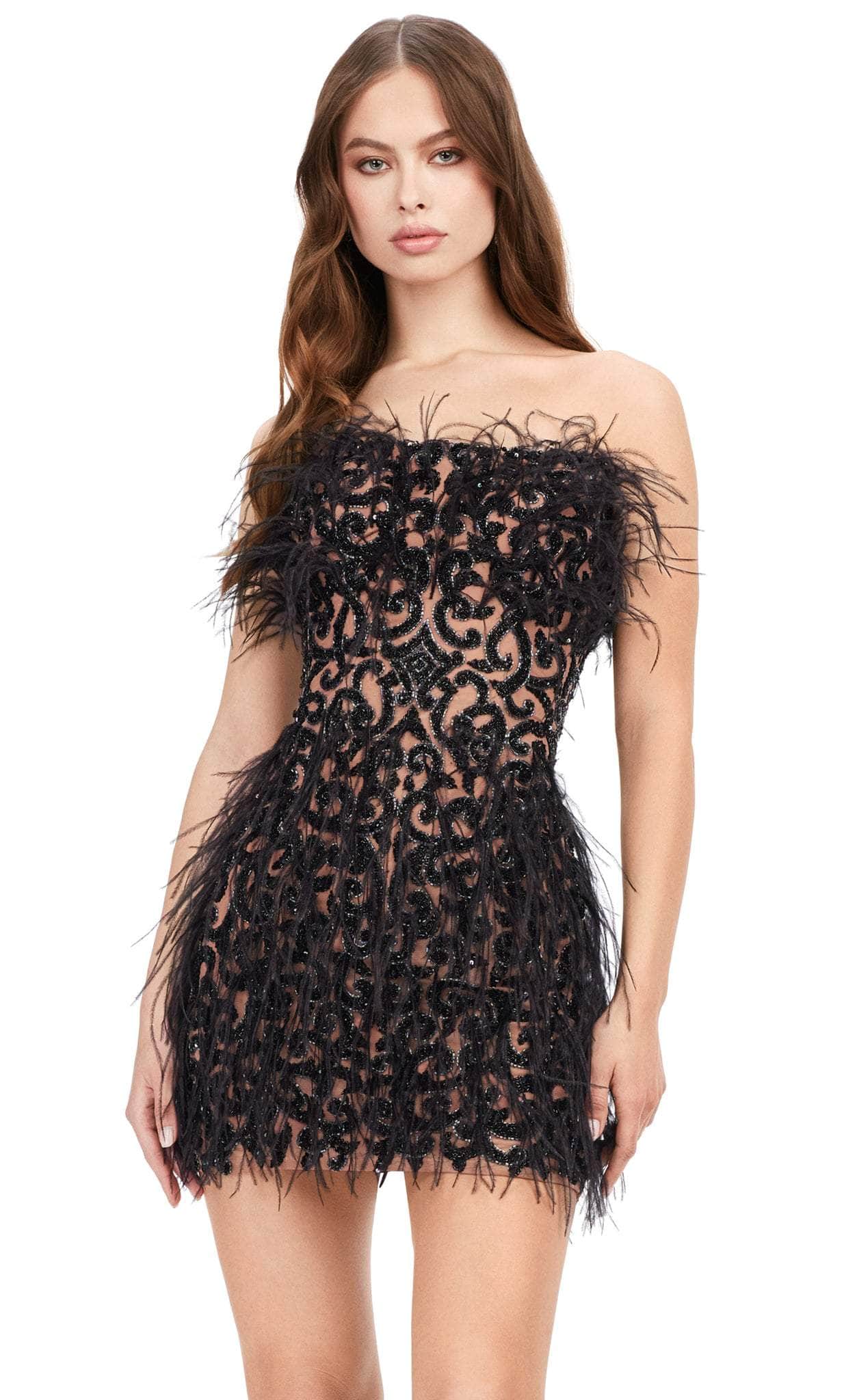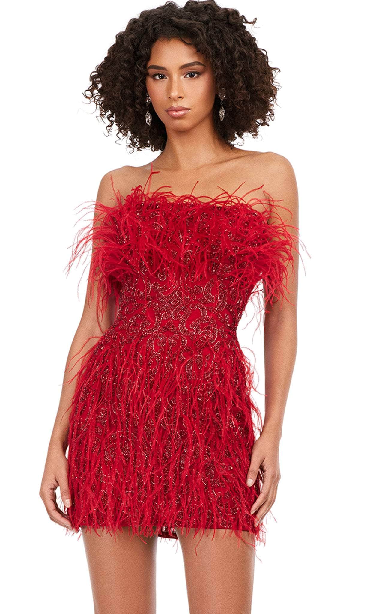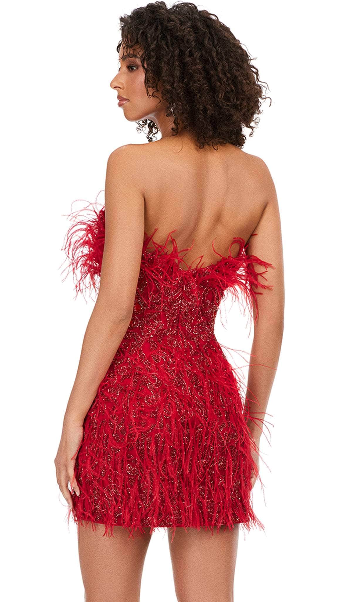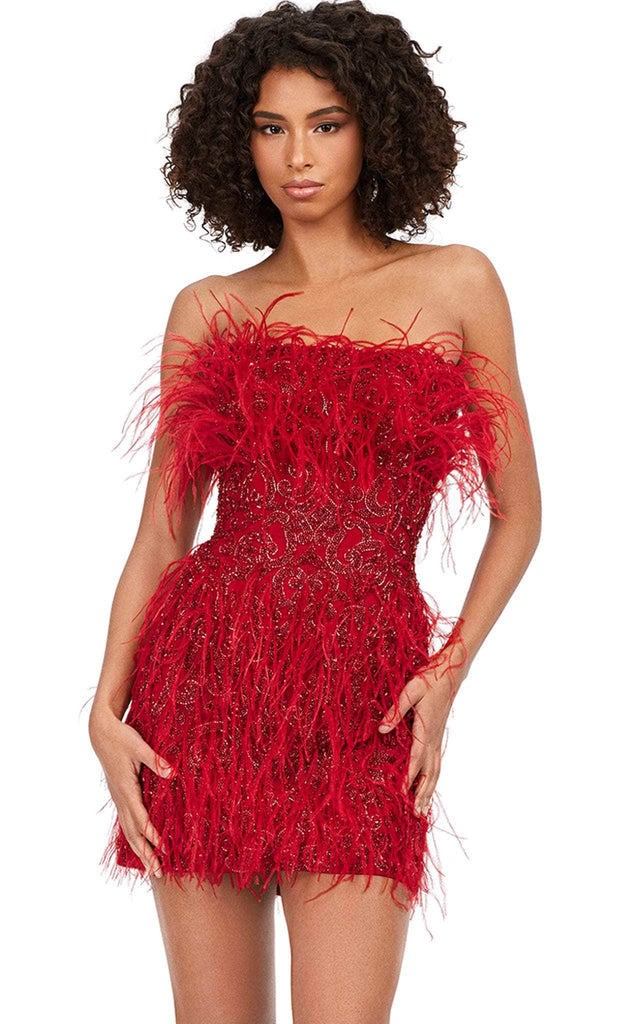Show off your trendsetting style as you wear this Ashley Lauren 4615 cocktail dress. A stylish and unique piece, this form-fitting outfit is fully embellished with intricate beadworks and feathers. Featuring a strapless bodice, it has a straight across neckline and a mid-open zipped-up back. The skirt is fashioned in a sheath silhouette that gracefully drops into a mid-thigh hem. Turn heads instantly when you wear this Ashley Lauren 4615 creation. Models are wearing the Black, Hot Pink, Ivory, Lilac, and Red colors.