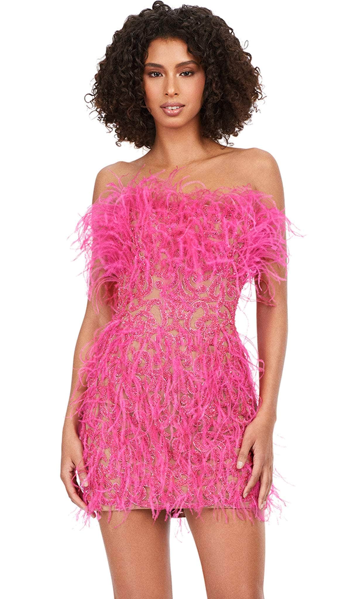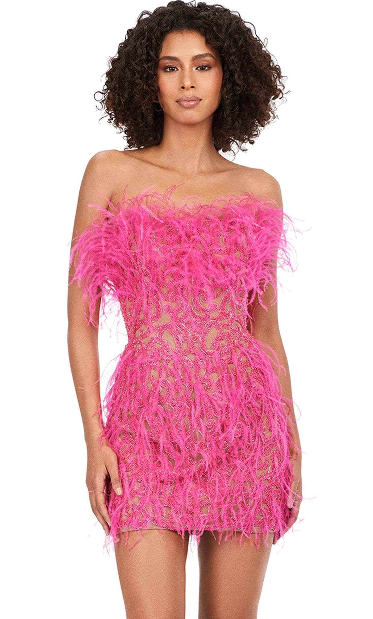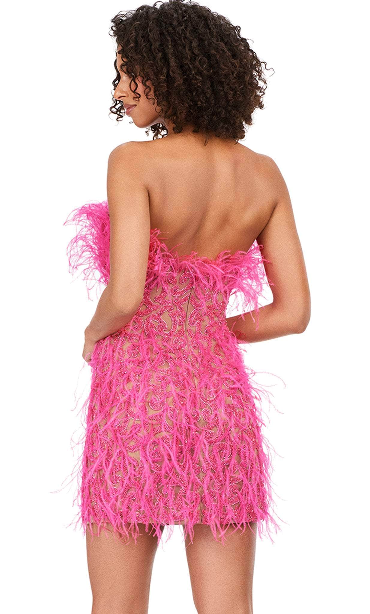 Show off your trendsetting style as you wear this Ashley Lauren 4615 cocktail dress. A stylish and unique piece, this form-fitting outfit is fully embellished with intricate beadworks and feathers. Featuring a strapless bodice, it has a straight across neckline and a mid-open zipped-up back. The skirt is fashioned in a sheath silhouette that gracefully drops into a mid-thigh hem. Turn heads instantly when you wear this Ashley Lauren 4615 creation. Models are wearing the Black, Hot Pink, Ivory, Lilac, and Red colors.