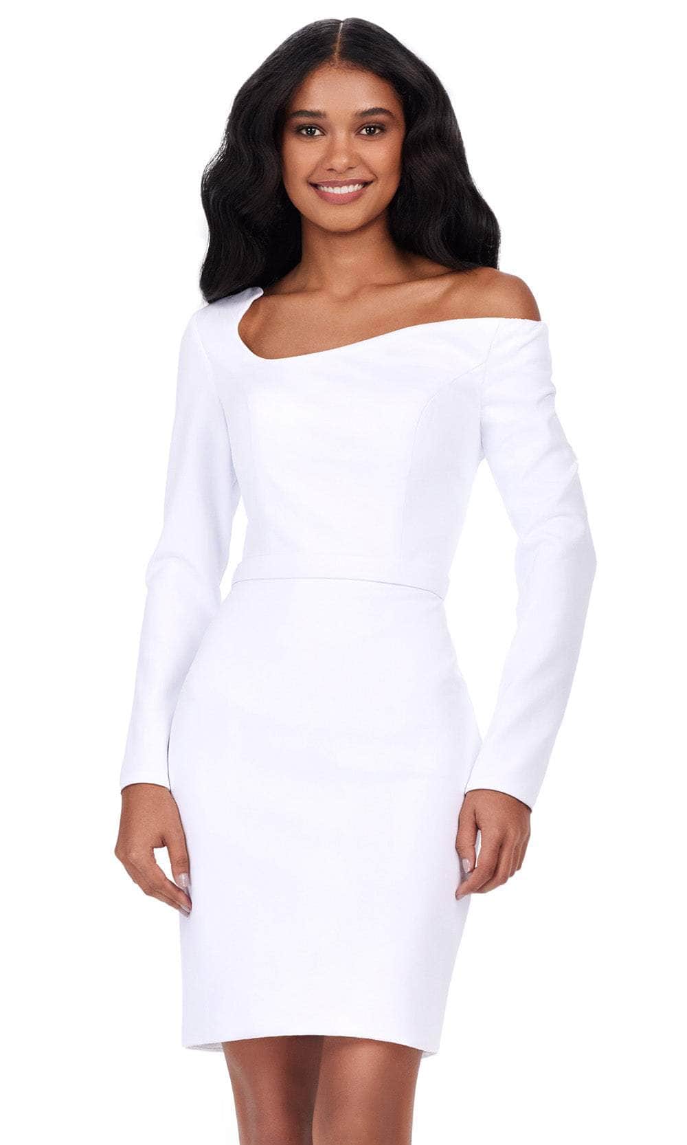 Epitomize chic sophistication with this Ashley Lauren 4674, A short scuba fabric dress. The fitted bodice, adorned with meticulous clean seams, ensures a sleek silhouette. Long sleeves add a touch of refinement, complemented by a full back secured with a zipper closure. The sheath skirt gracefully follows the natural contours, exuding modern elegance. A thin waistband cinches the waistline, adding a subtle detail. This Ashley Lauren 4674 effortlessly combines style and comfort, making it a versatile choice for any occasion. Models are wearing Navy, Red, and White colors.