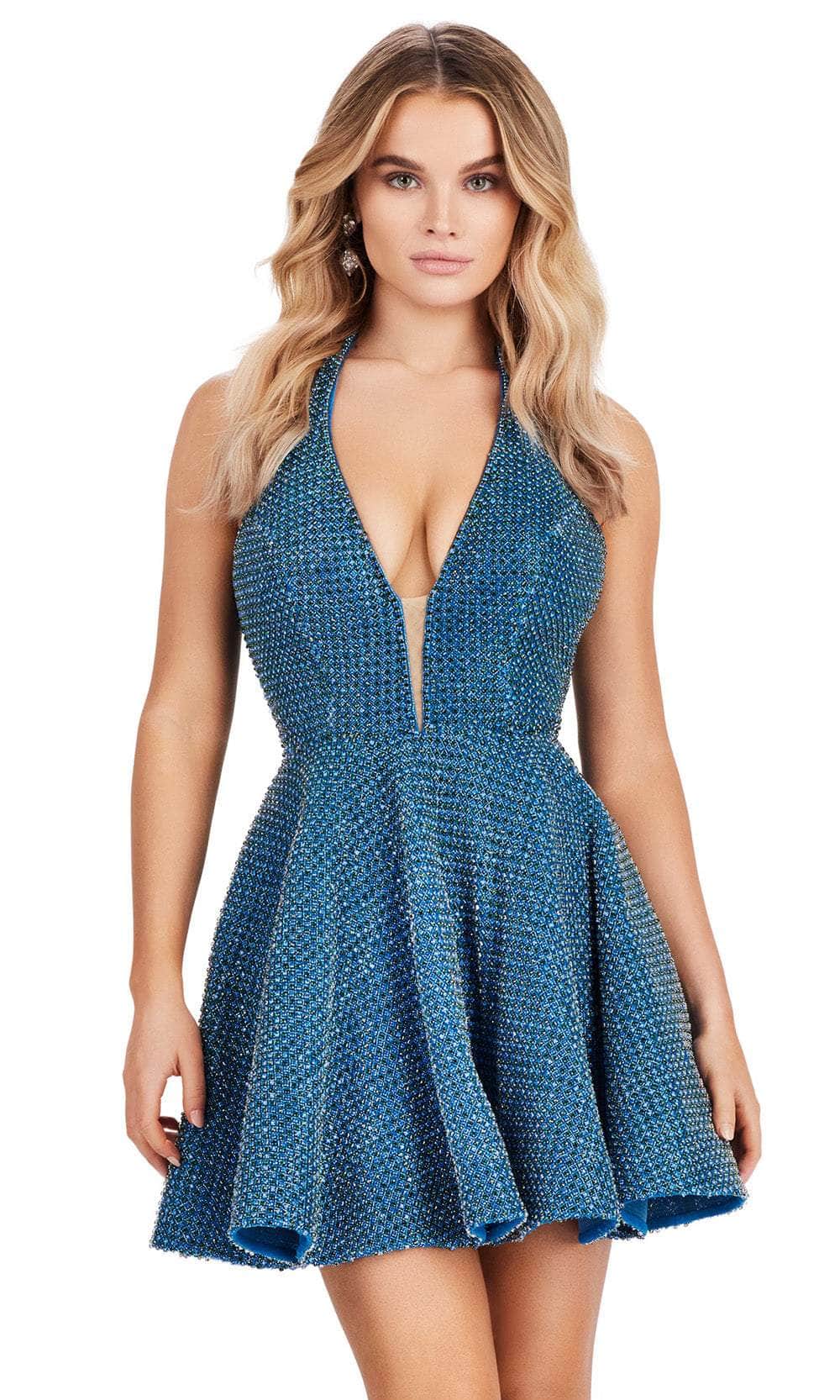 Radiate glamour in Ashley Lauren 4677, a dazzling short dress adorned with sparkling beads. The sleeveless fitted bodice, embellished with intricate beadwork, features a halter strap for a chic touch. A deep V-neck, highlighted by a sheer insert, adds alluring detail. The short-length A-line skirt completes the look with playful sophistication. This Ashley Lauren 4677 is a stunning choice for those seeking a perfect blend of glamour and contemporary style, ensuring you stand out at any event. Models are wearing Peacock and Silver colors.