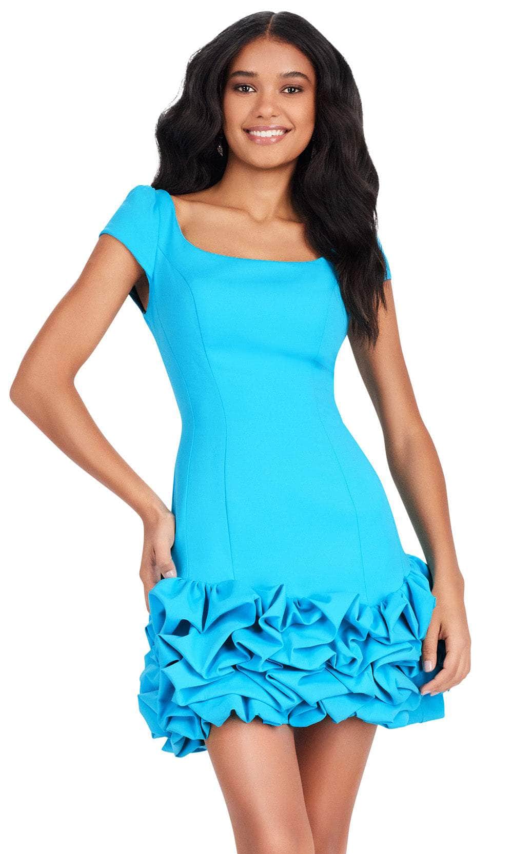 Step into elegance with Ashley Lauren 4680, a scuba fabric dress designed to captivate. The cap sleeves and fitted bodice create a chic silhouette, while the scoop neckline adds a touch of sophistication. A back zipper closure ensures a seamless fit, and the short-length sheath skirt is adorned with rosette details, offering a blend of modern charm and timeless grace. Ashley Lauren 4680 is a perfect choice for those seeking a stylish and refined look for various special occasions. Models are wearing Turquoise and Fuchsia colors.
