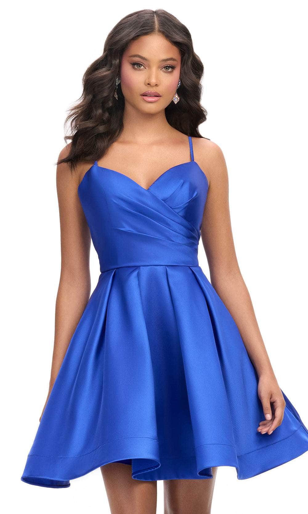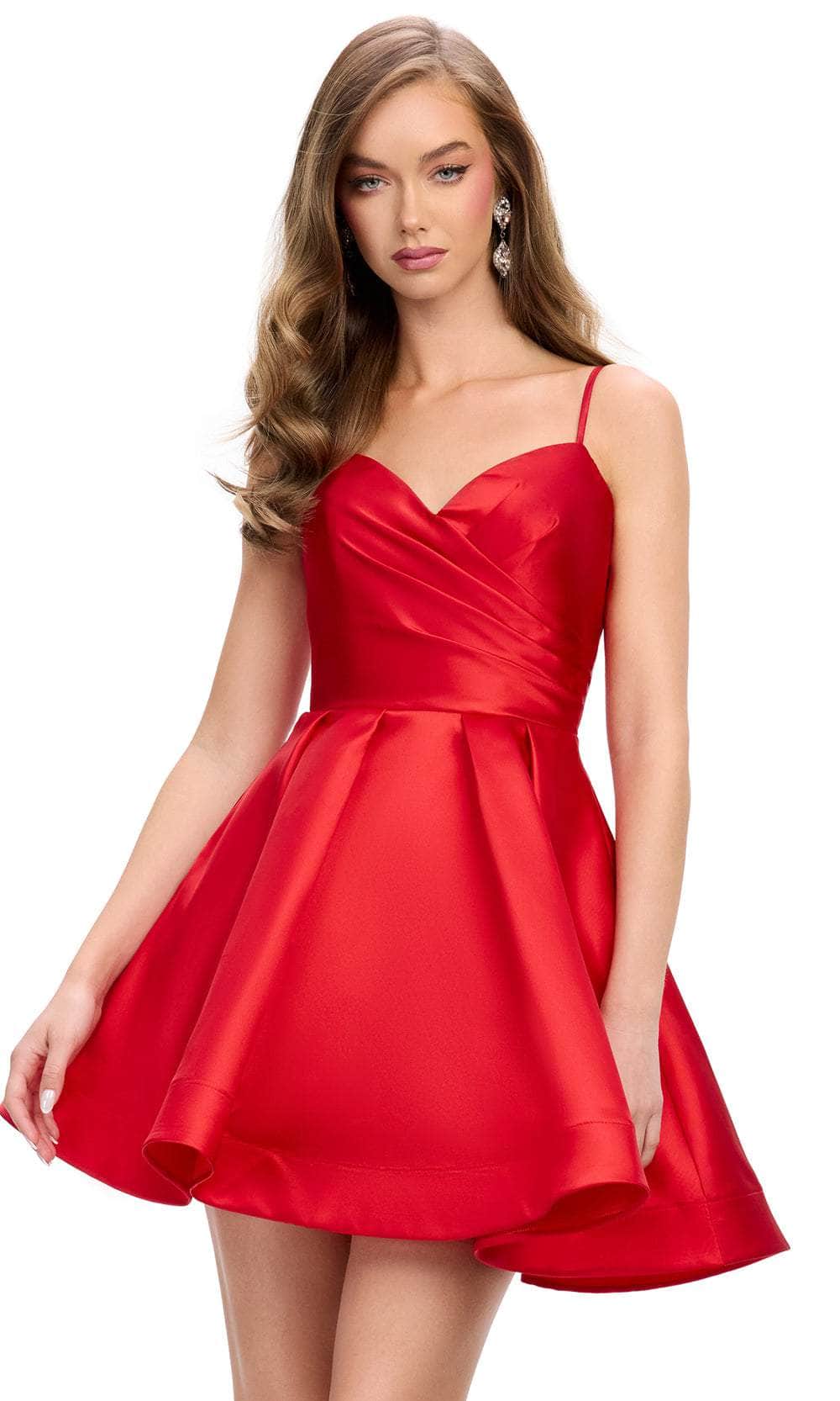 Create an everlasting impact in this creation from Ashley Lauren 4780. This outfit boasts adjustable spaghetti straps and a sleeveless style for a comfortable fit. The asymmetrical ruching on the top bodice adds an extra touch of glamour, while the sweetheart neckline is perfectly complemented by the mid-open back. Detailed in box pleating that adds volume and style, the skirt widens in an A-line silhouette that fits all body types. A horsehair hem and short hemline finish this timeless ensemble. Leave the crowd enthralled with the beauty of this Ashley Lauren 4780 dress. Models are wearing Red, Royal, and White colors.
