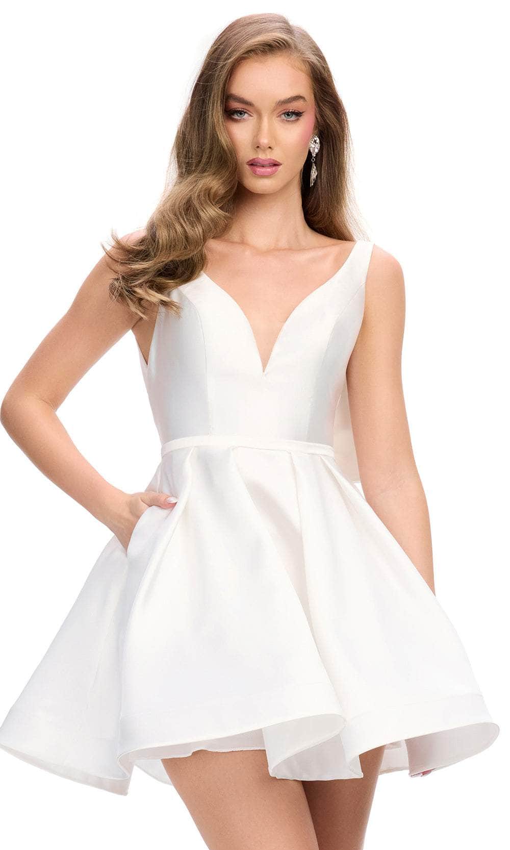 Make wonderful memories while wearing this Ashley Lauren 4781 creation. Feel stunning in this sleeveless dress that features a deep v-neckline and an open back with a fashionable inverted bow detail. The thin waistband highlights your curves, while the wide shoulder straps provide great support. It is crafted from luxurious Mikado fabric, and the pockets are a perfect addition that keeps your stuff close. The skirt is designed in box pleated that gives it effortless charm and flares out into a mid-thigh A-line silhouette. The Ashley Lauren 4781 dress is a versatile piece that will enhance your wardrobe. Models are wearing Black, Pink, and White colors.