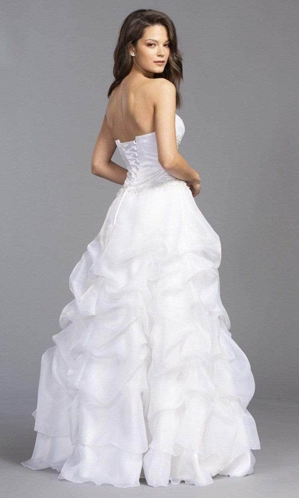 Elevate your style with the chic elegance of Aspeed Bridal LH039 gown. Delightfully fashionable, this dress features soft, layered ruffles cascading in a flattering A-line silhouette to full length. The fitted bodice is adorned with intricate beadwork, complementing the strapless straight across neckline. Closure is secured with a lace-up tie-back detail, ensuring a perfect fit for every woman. Aspeed Bridal LH039 effortlessly allows every woman to discover her best look and fit with ease.