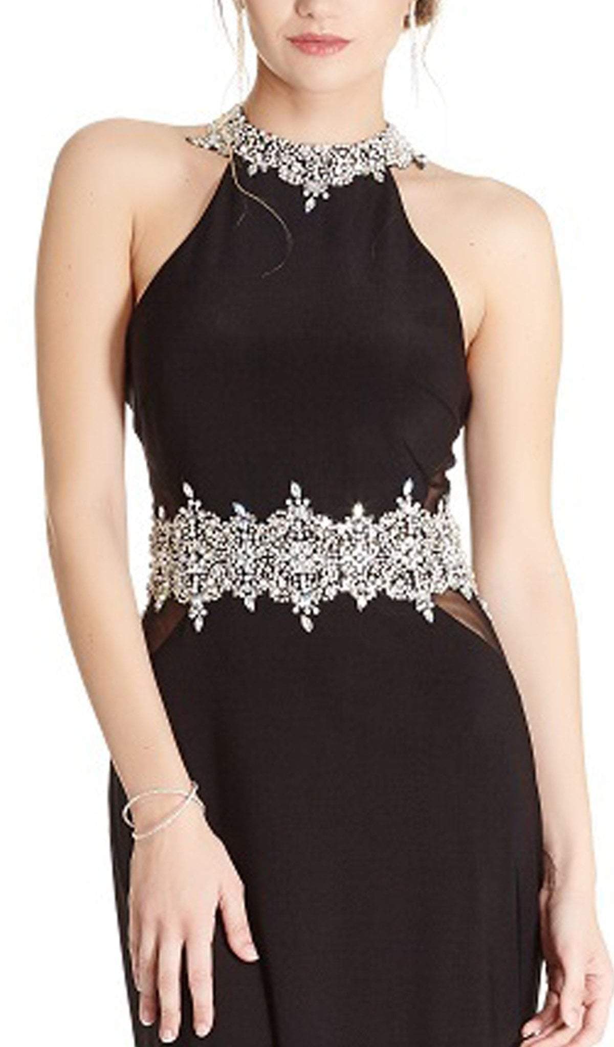 Get a timeless and trendy look in a new dress from Aspeed L1770. Charms in a sleeveless, halter neckline adorned with embellishments. The fitted bodice has a wide waistband and flaunts a sexy open back. Be a woman of style and beauty in this classy Aspeed dress. Model is wearing Black color.