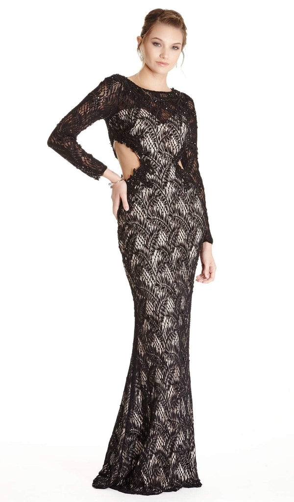 Get noticed in any crowd wearing this dress from Aspeed L1784. Features a bateau neckline with long sleeves, the fitted bodice is styled with sexy side cutouts. The skirt runs in full length hem and flatters your figure with its fitted silhouette with a mini train finish. Get noticed in this radiant dress from Aspeed.