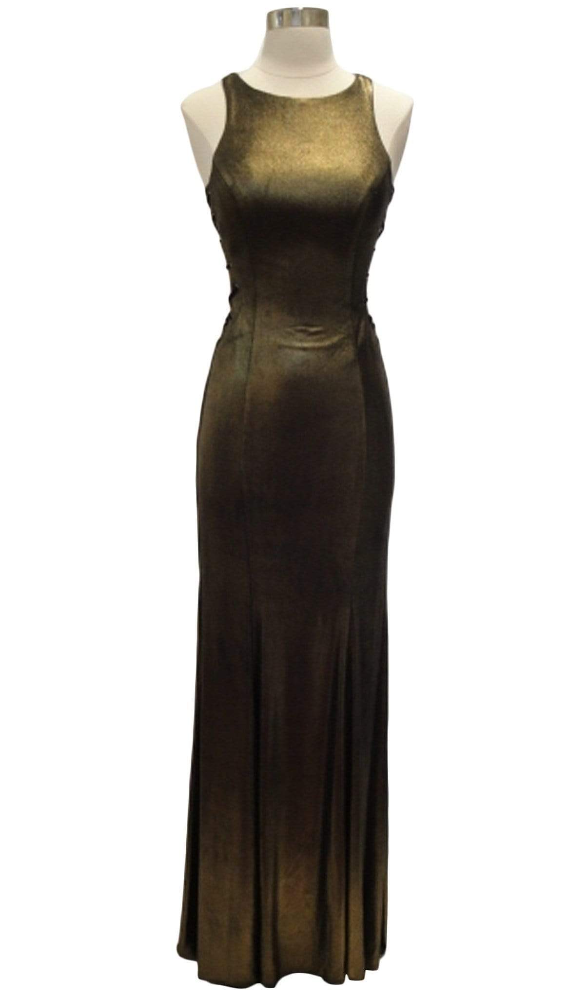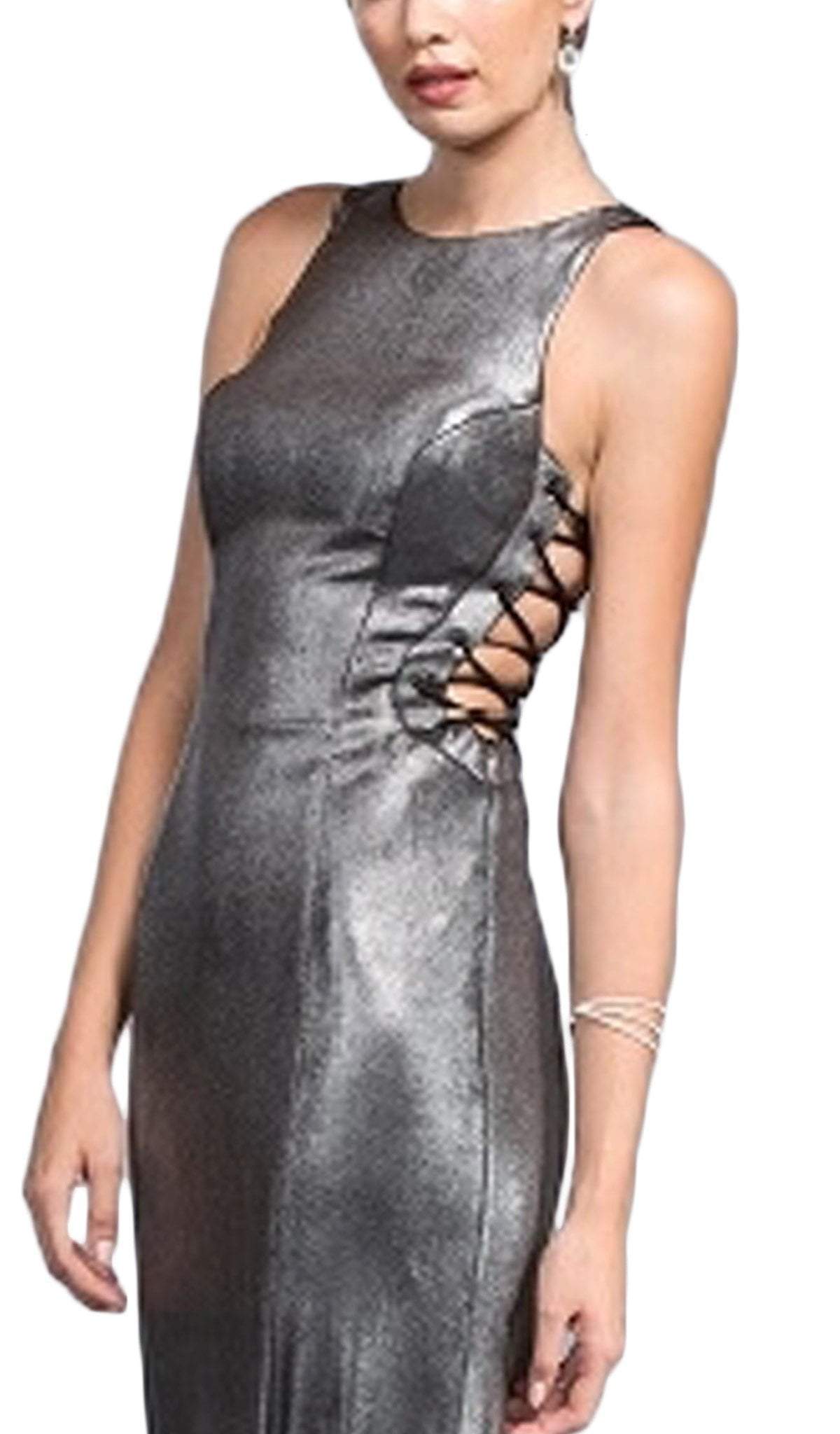 Look sassy and stunning in this daring creation by Aspeed L2006. Glams in a sleeveless, jewel neckline with sides styled in lace up detail. The fitted bodice gives way to a full length sheath skirt with a sweep train finish. Dare to show off your style in a fashionable dress from Aspeed. Model is wearing Gunmetal color.