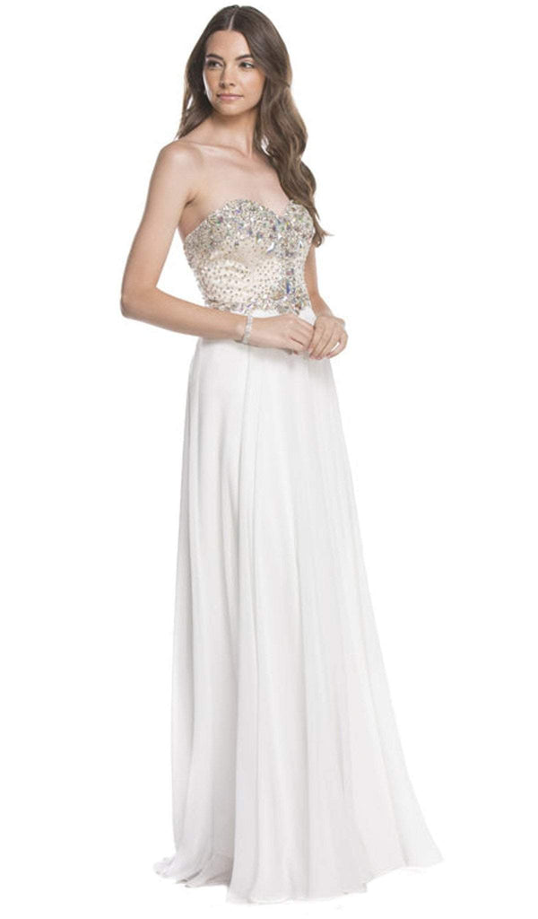 Claim that look of sophistication wearing this glamorous evening gown by Aspeed Design L1564. The fitted bodice showcases a strapless sweetheart neckline beautified with sparkling crystal embellishments. An A-line skirt beautifully flares with pleating to a full length hem. The back is mid-open enclosed with a lace up closure for an adjustable and flattering fit. Look your absolute best with this Aspeed Design ensemble and create a night that you will never forget.