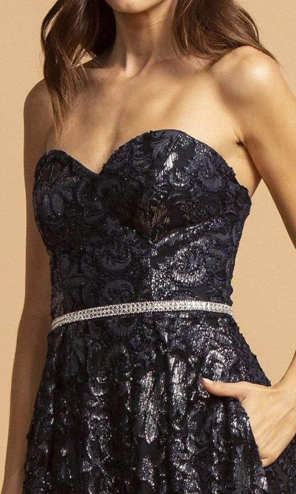Showcase a chic style sure to captivate the luxurious crowd in the stunning Aspeed Design D321. Featuring a sweetheart neckline and a strapless design, this dress exudes elegance. The A-line silhouette is crafted with shiny, shimmering embroidery, adorned with delicate bead embellishments. Complete with pockets, adding to the gown's allure, it boasts a mid-open back with a back zipper closure. A magnificent long dress from Aspeed Design D321 that promises universal appeal./p>