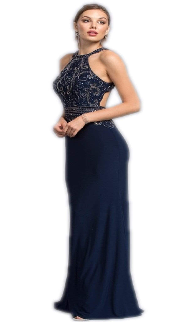 Turn yourself into a head-turning sensation by slipping into this utterly fetching dress from Aspeed L2065. Showcases a sleeveless, halter neckline with fitted bodice bedecked with glittering embellishments. The dress reveals an open back and the skirt runs in full length hem to a sweep train finish. This Aspeed dress is a brilliant look for anyone who wants to stand out at the party.