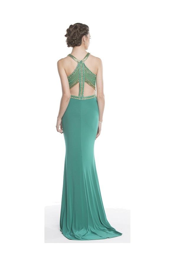Exude class and elegance in this style by Aspeed L1669. Features a sleeveless, halter neckline with fitted bodice adorned with embellishments and designed with front and back cutouts. The skirt has a sheath silhouette highlighting your curves and is styled with a sweep train for added drama. Make your debut in a red carpet dress from Aspeed.åÊ