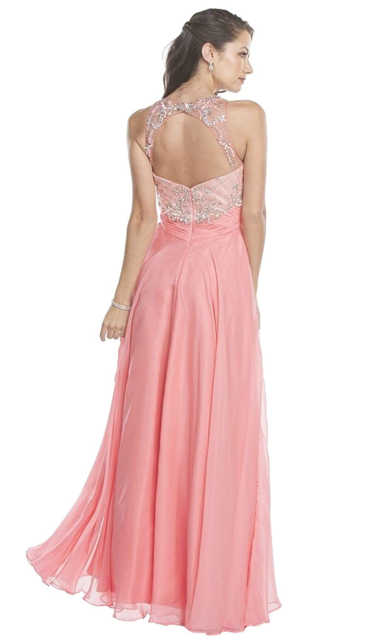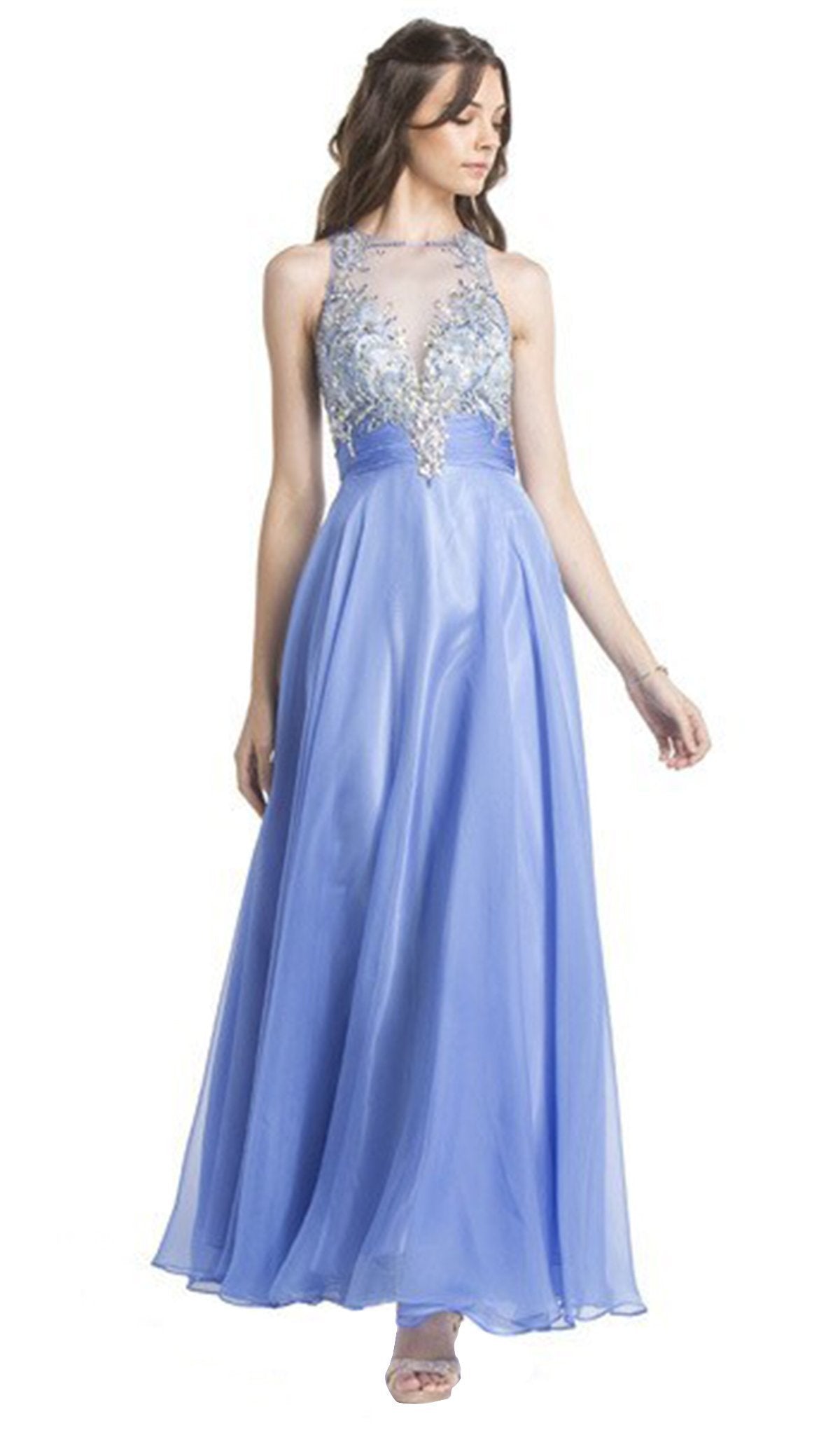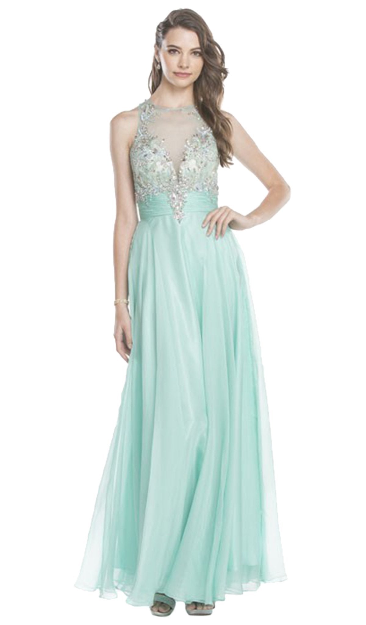 This on trend Aspeed Design L1419 prom dress will surely get you noticed on that special night. Extravagantly designed with sheer illusion neckline in lavishly embellished bodice, ruched waist band and ornately framed cut out back. This gorgeous design floats and flutters to the full-length. This Aspeed Design style is created to set your best foot forward to ensure you look and feel your very best on prom night.