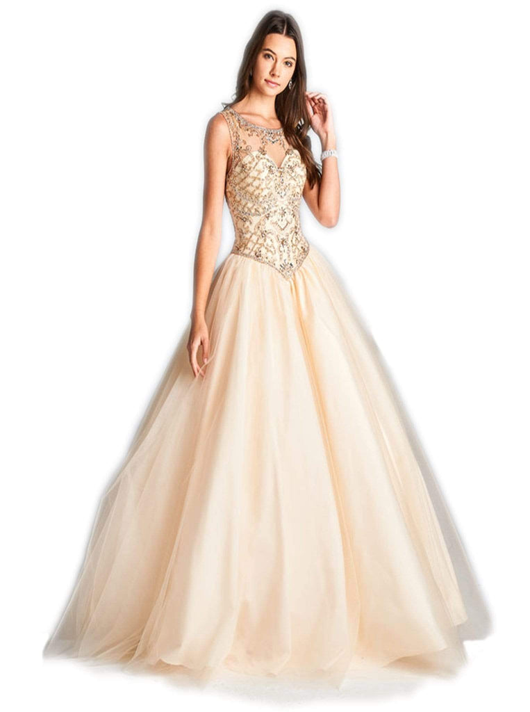 Aspeed Design - Embellished Illusion Scoop Quinceanera Ballgown