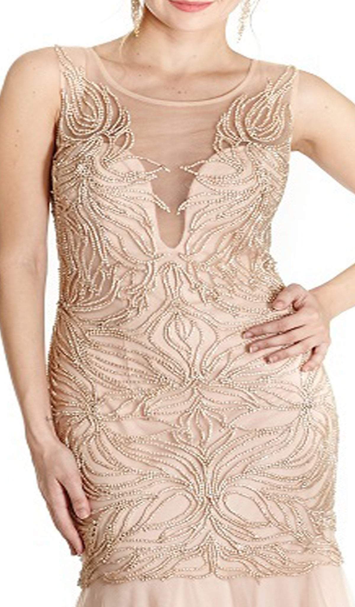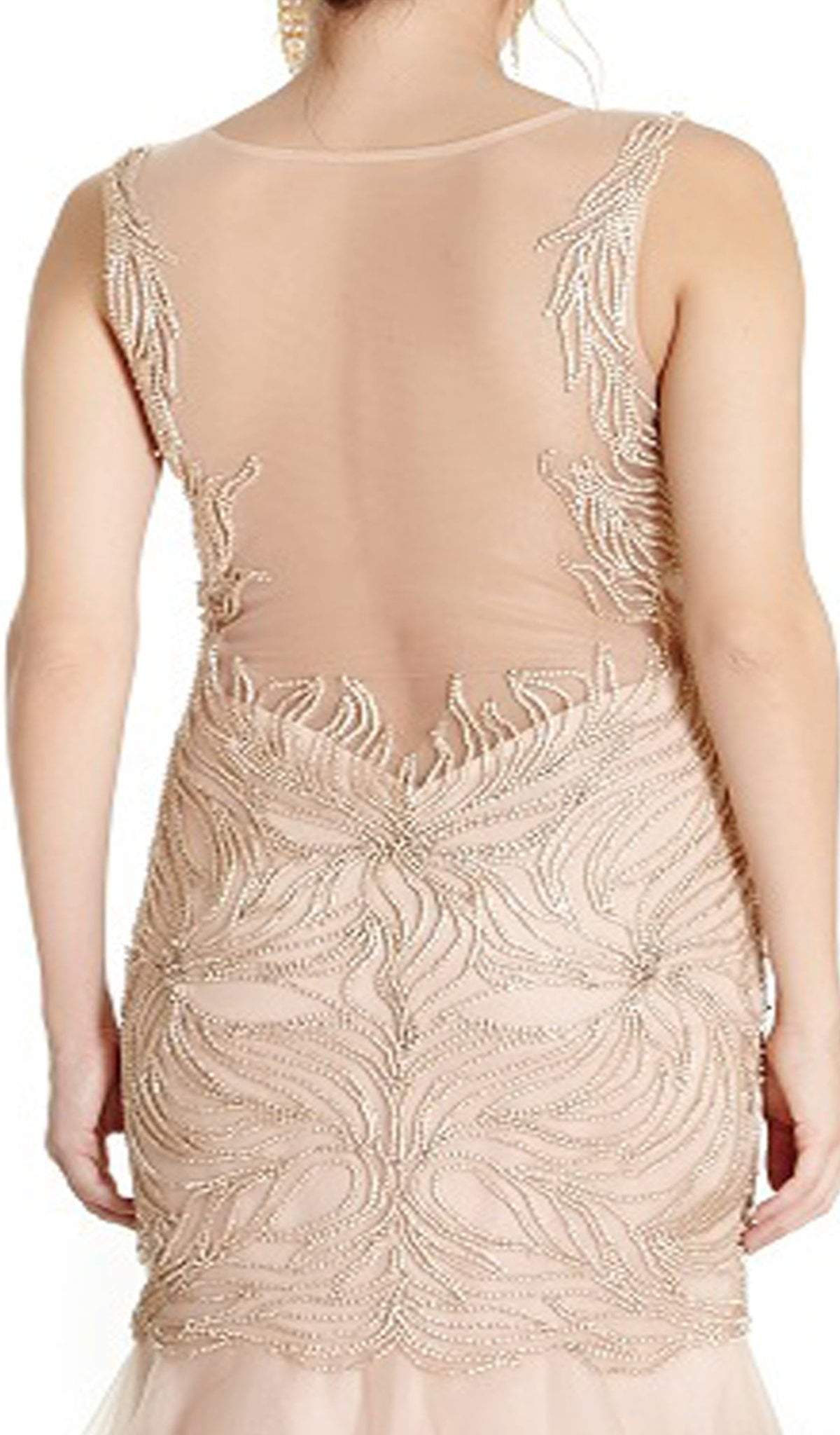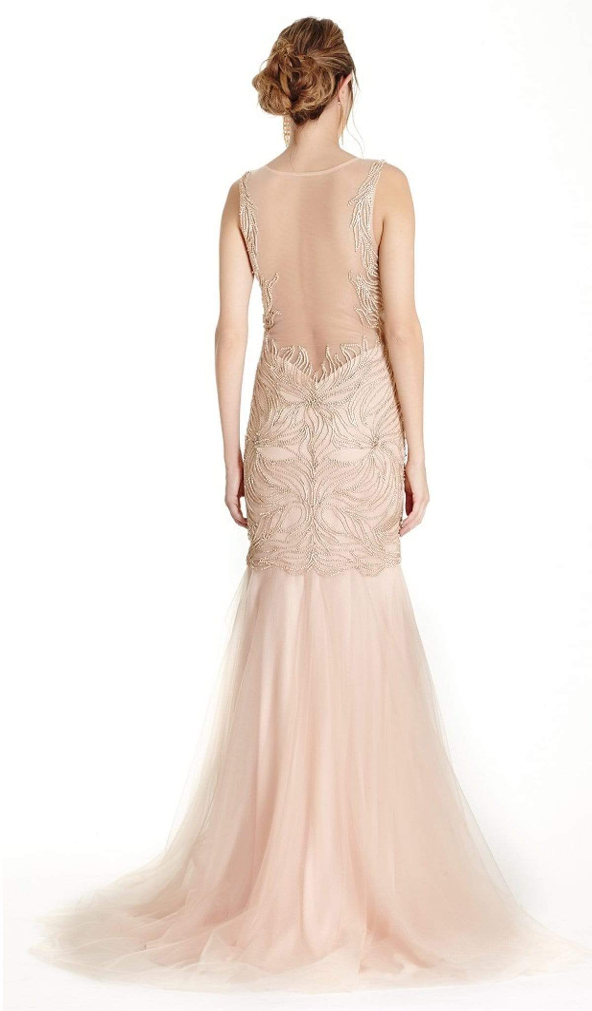 | Details: | Sleeveless, Mesh, Plunging neckline, Fitted bodice, Embellishments, Sheer back, Trumpet skirt, Sweep train |