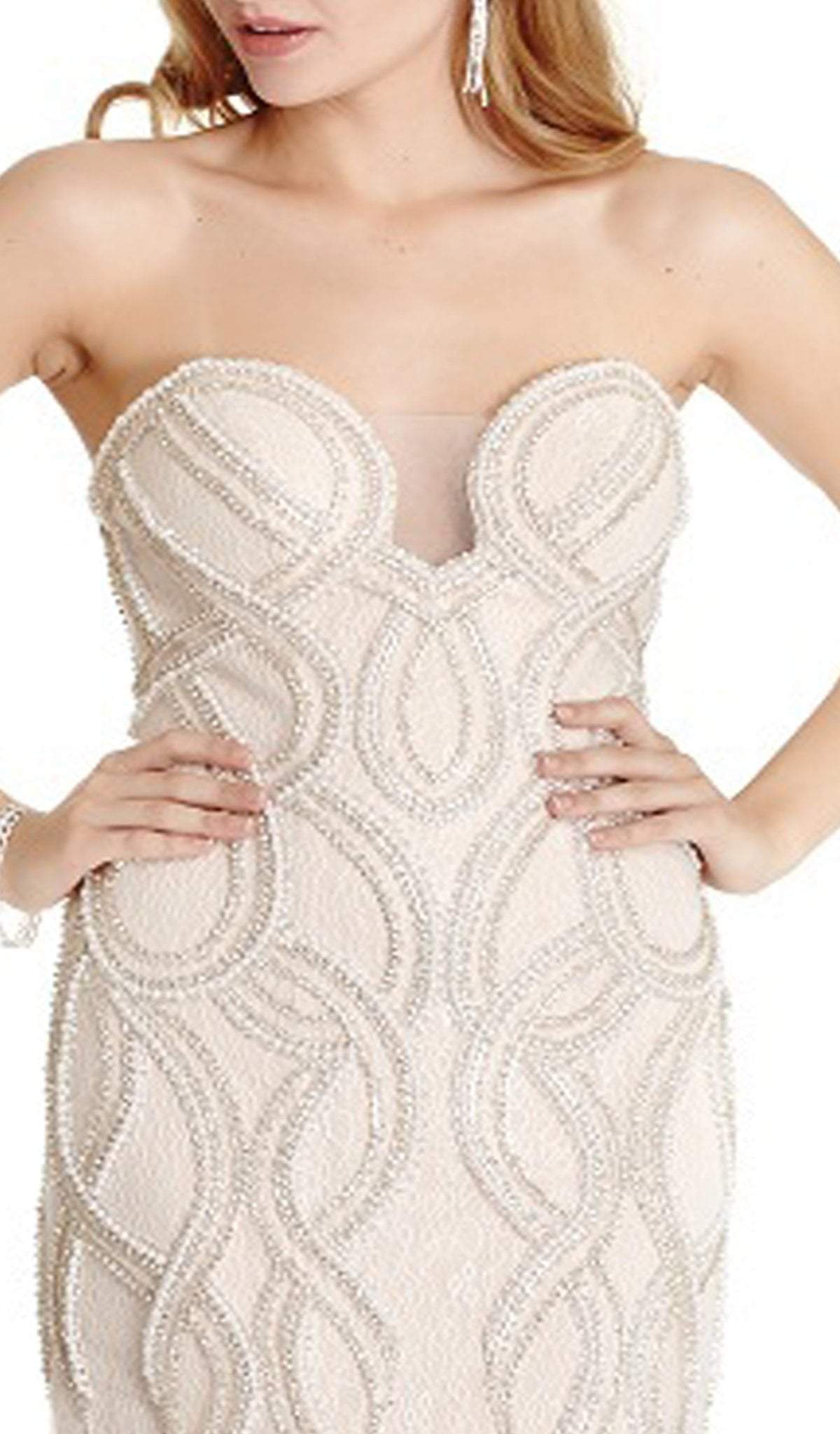 Beam with pride when you wear this radiant dress from Aspeed L1765. Flaunts a strapless, sweetheart neckline with sheer panel. The fitted bodice is detailed with embellishments in beautiful parents. The back has a lace up closure while the skirt flows towards the floor in a trumpet silhouette and finishes in a sweep train. Dress to the nines in this glam dress by Aspeed.