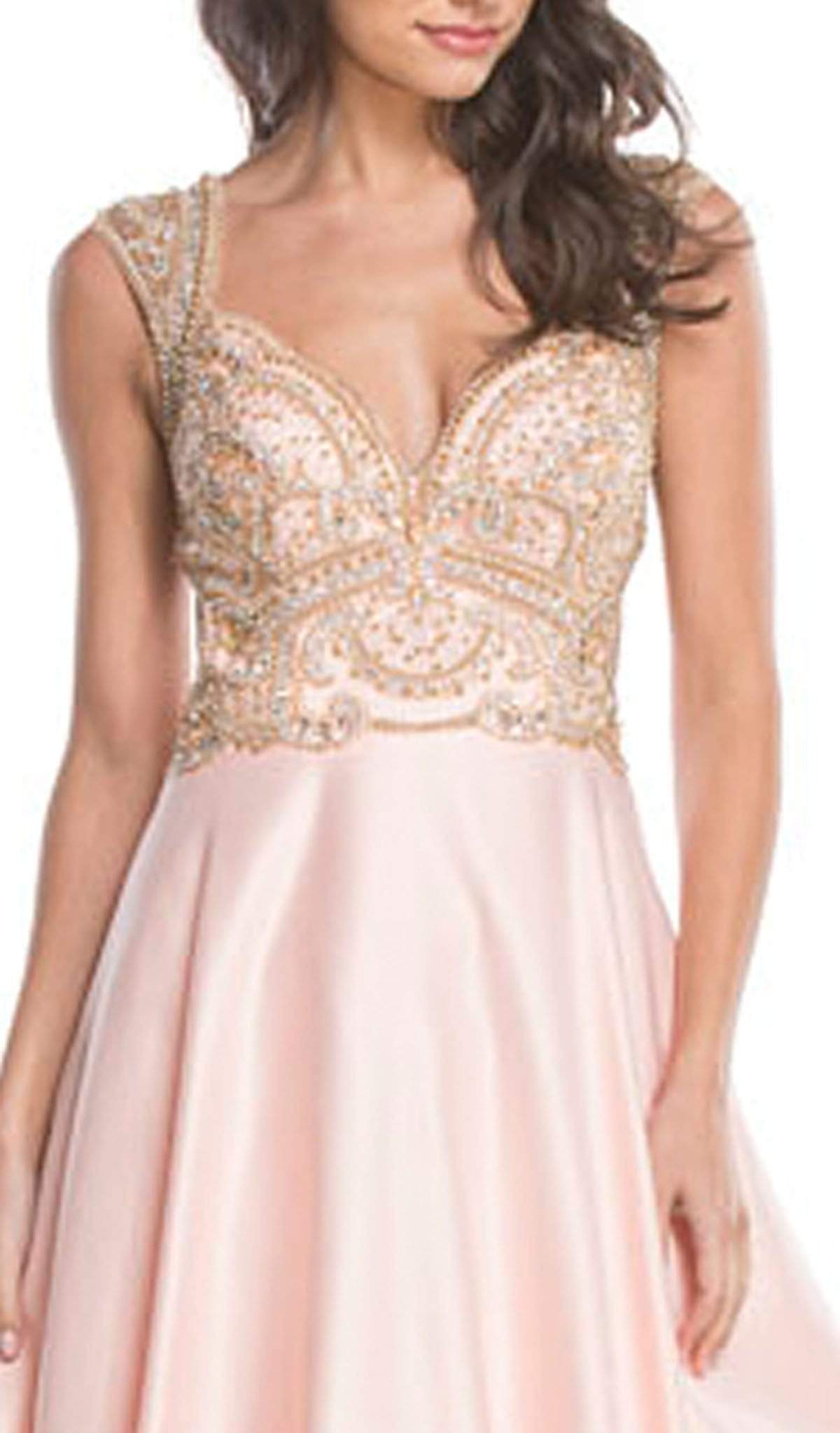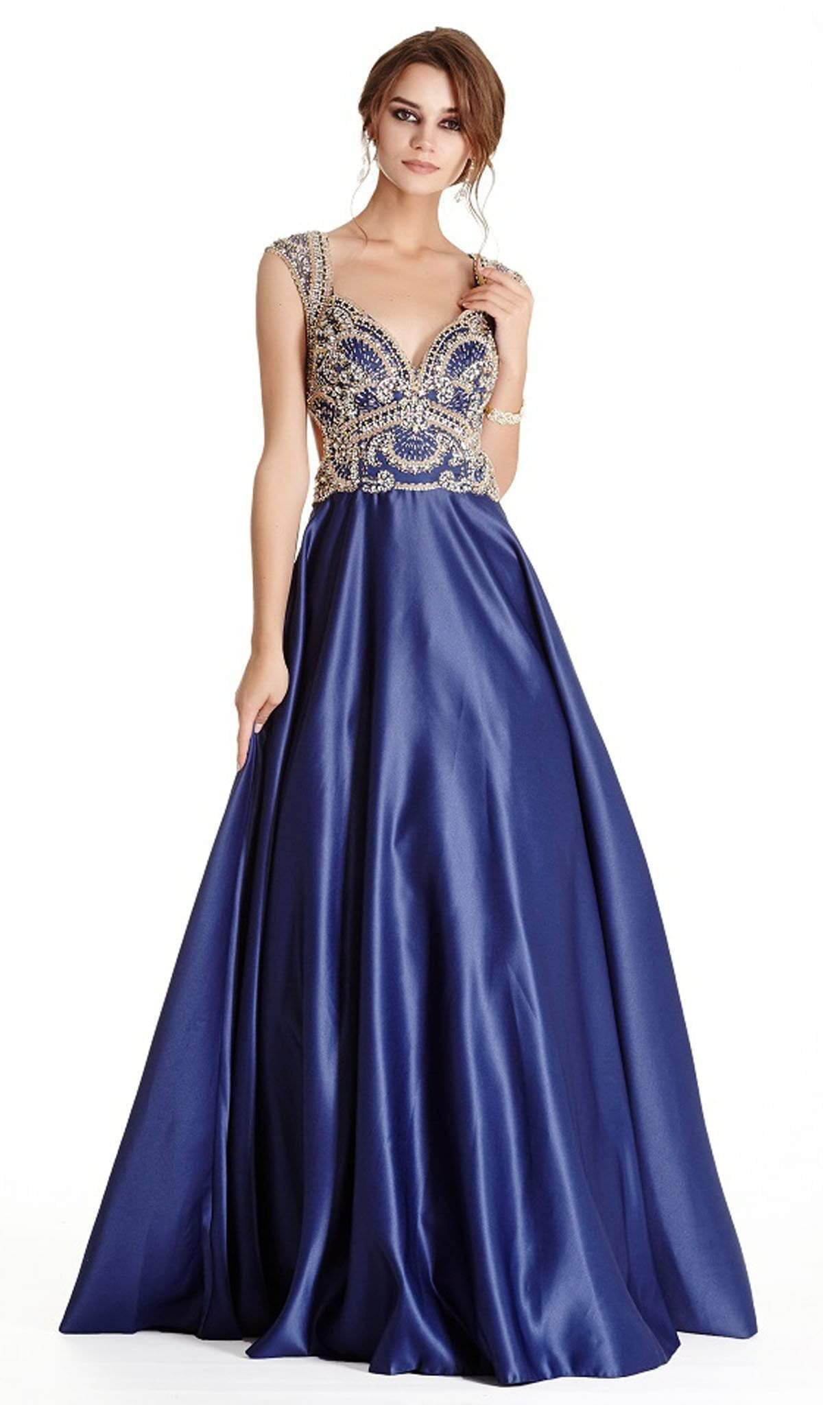 | Details: | Cap sleeves, Wide straps, Embellishments, Open back, Ballgown skirt |