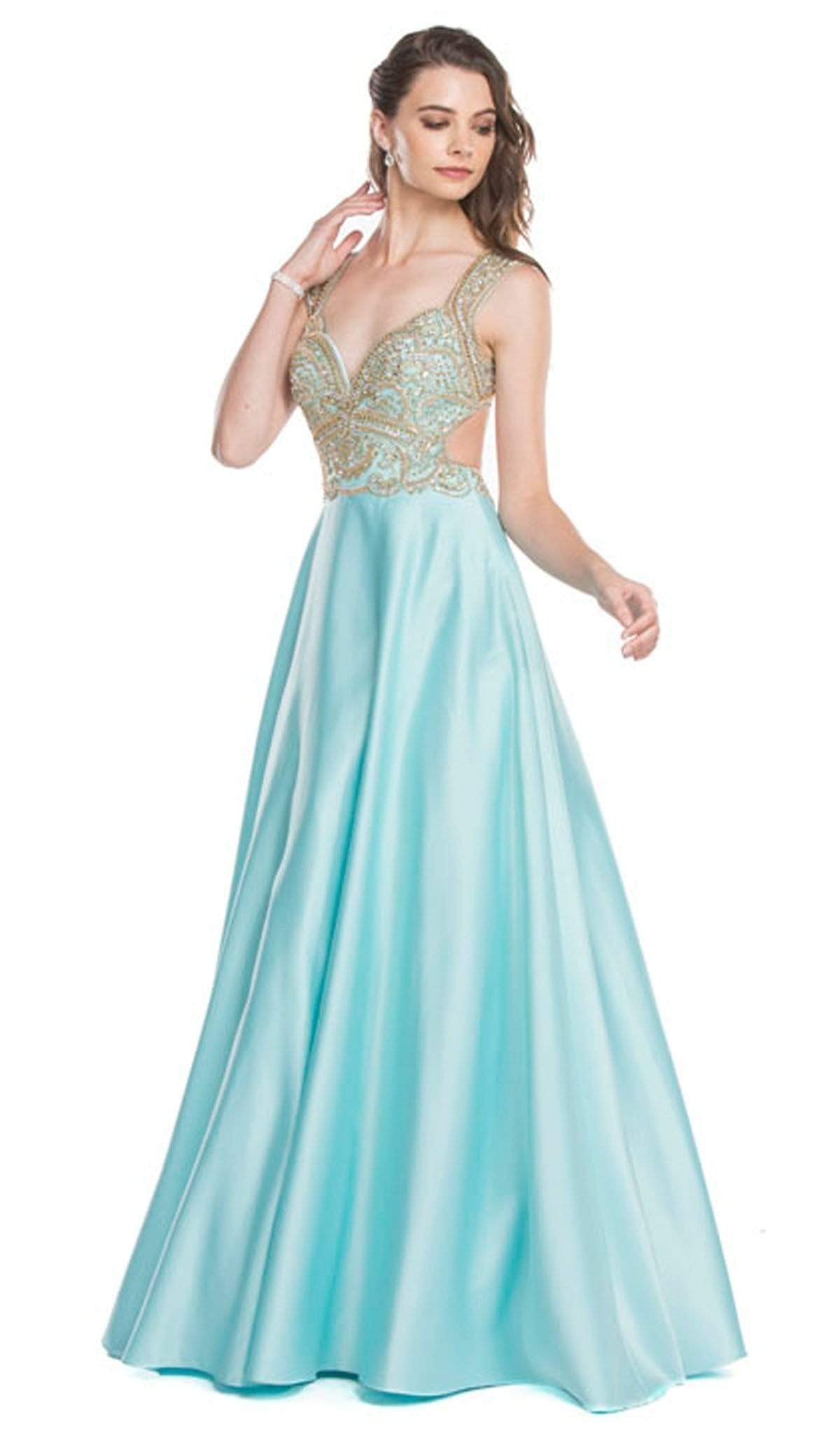 Look sensational in this ballgown look from Aspeed L1627. Presents in a sweetheart neckline with wide straps and cap sleeves. The bodice is richly ornate with embellishments and features an open back. The skirt opens in a ballgown silhouette. Be the spotlight wearing this extravagant gown from Aspeed.