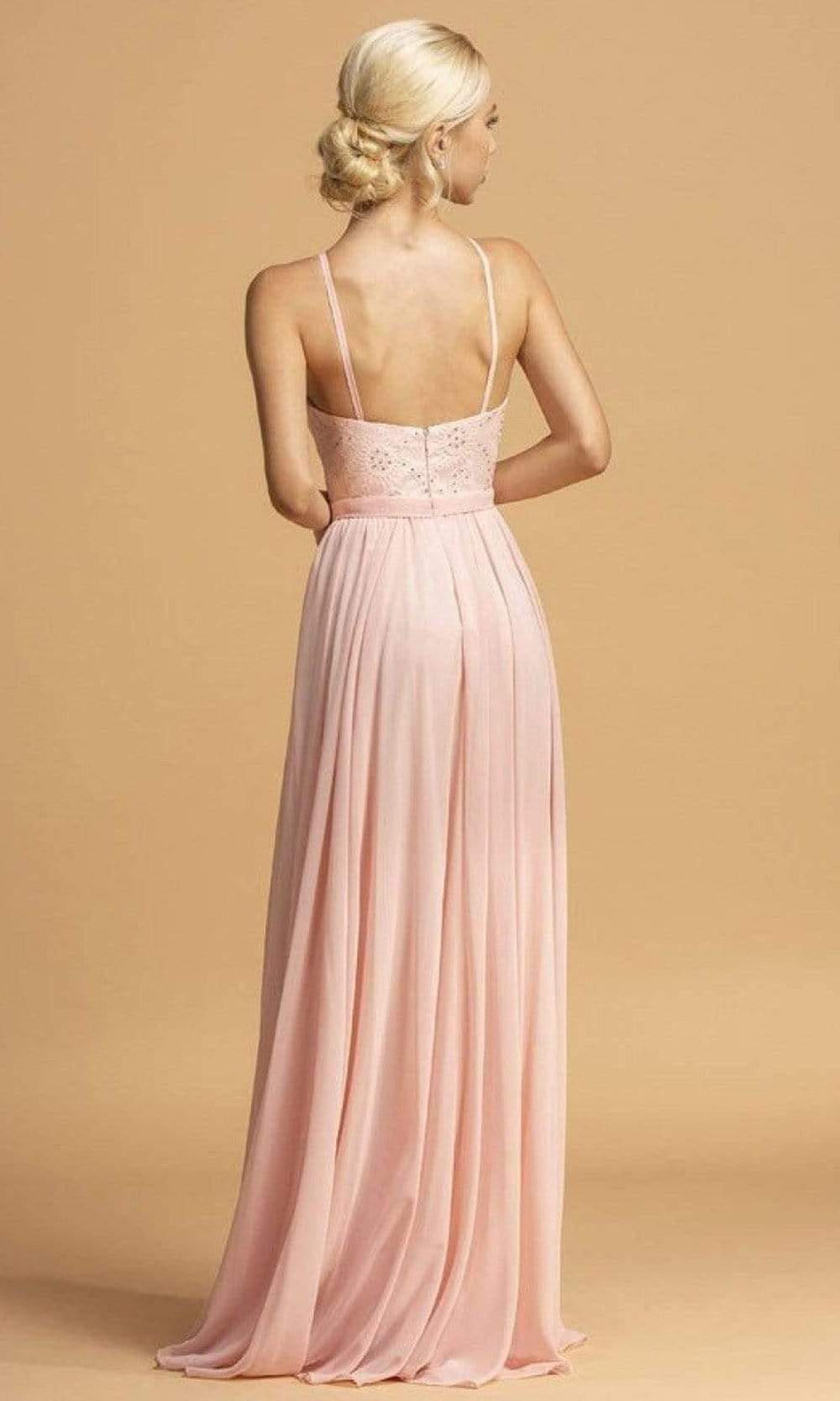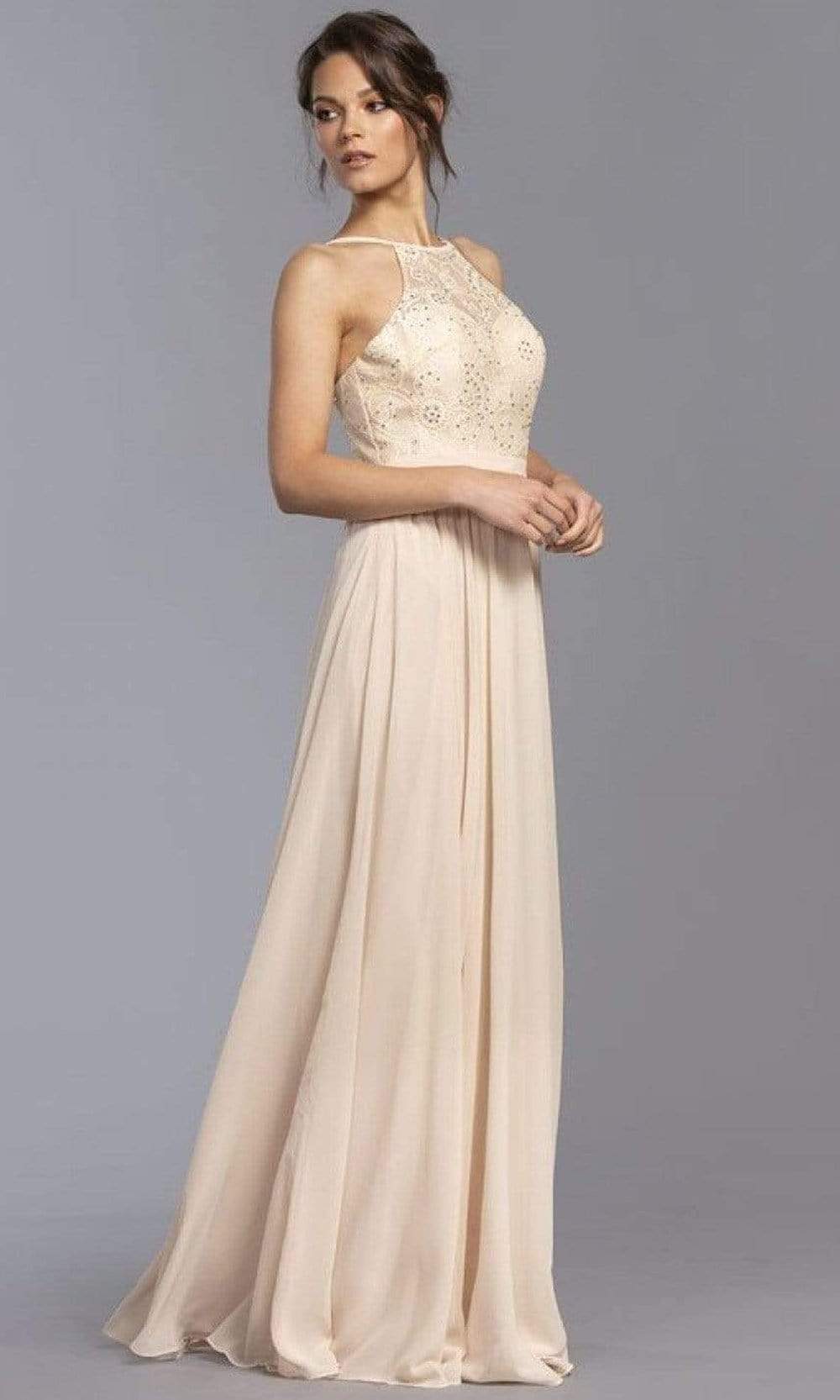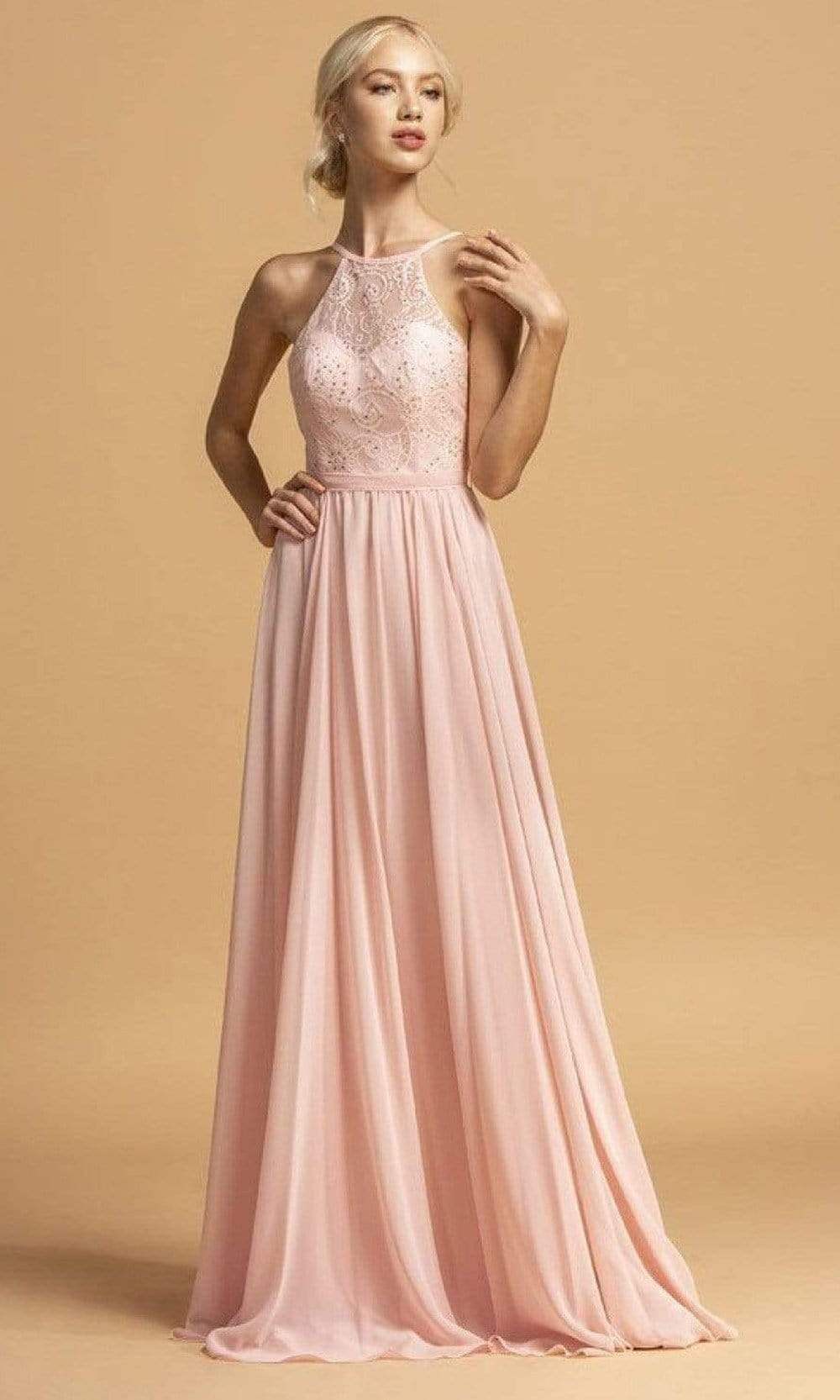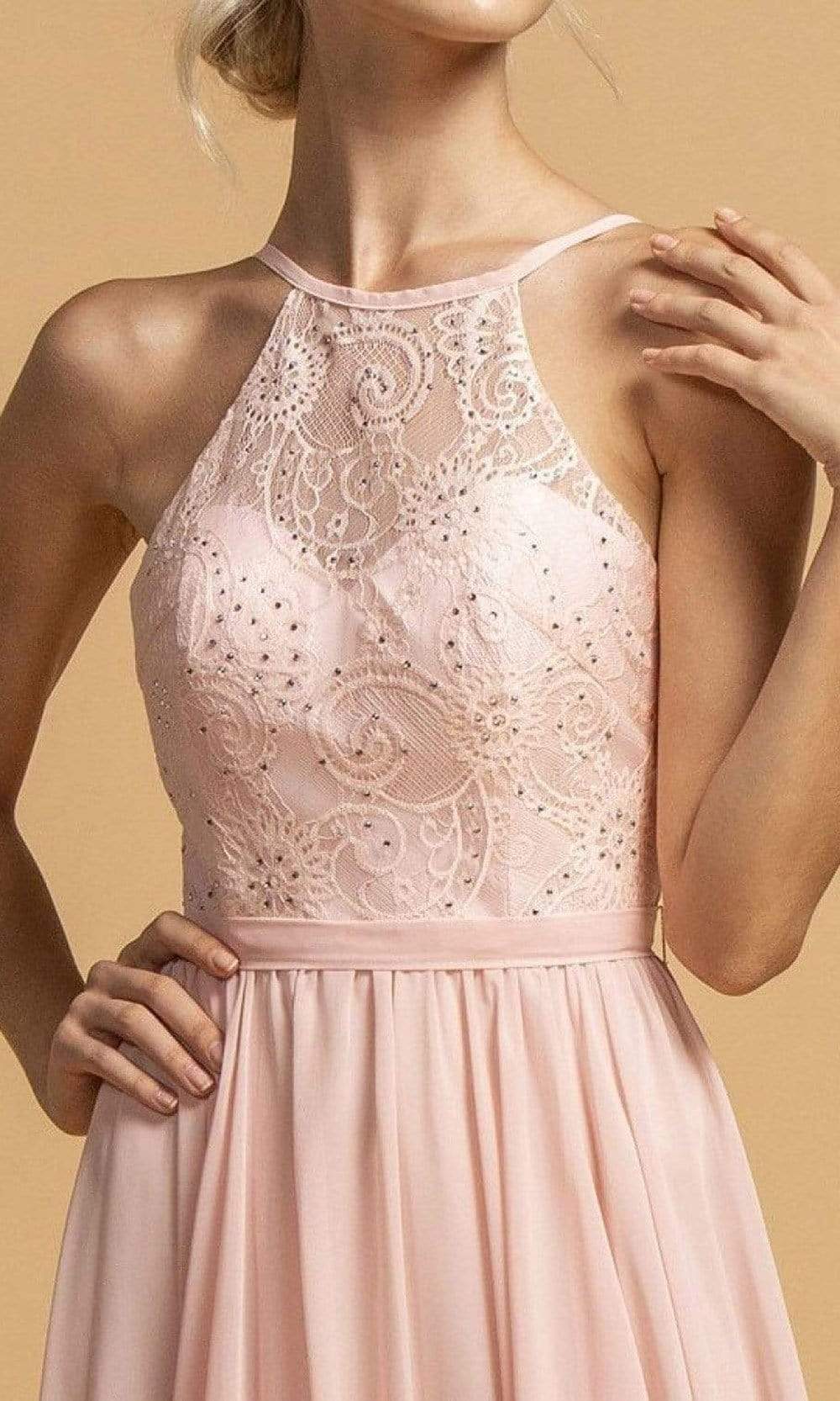 Traditional style gets a glam twist in a sophisticated dress from Aspeed Design L2105. This chiffon/lace gown enchants in a sleeveless, halter neckline with a fitted bodice. The skirt fashions a full length A-line silhouette. Get glam in this fabulous dress from Aspeed Design.