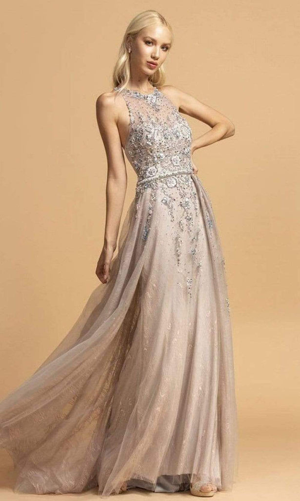 Clothe yourself in creative couture with this dazzlingly mellifluous Aspeed Design L2155. An A-line silhouette dress that parades a jewel illusion neckline and a sleeveless. It has embellishment on the top down to the skirt. The dress is made with a tulle fabric that it makes the skirt look flowy and elegant. The back is design with an illusion effect for a daring look and it also has embellishment for the design. Aspeed Design is your excellent pick when you dare to look stylishly spectacular!