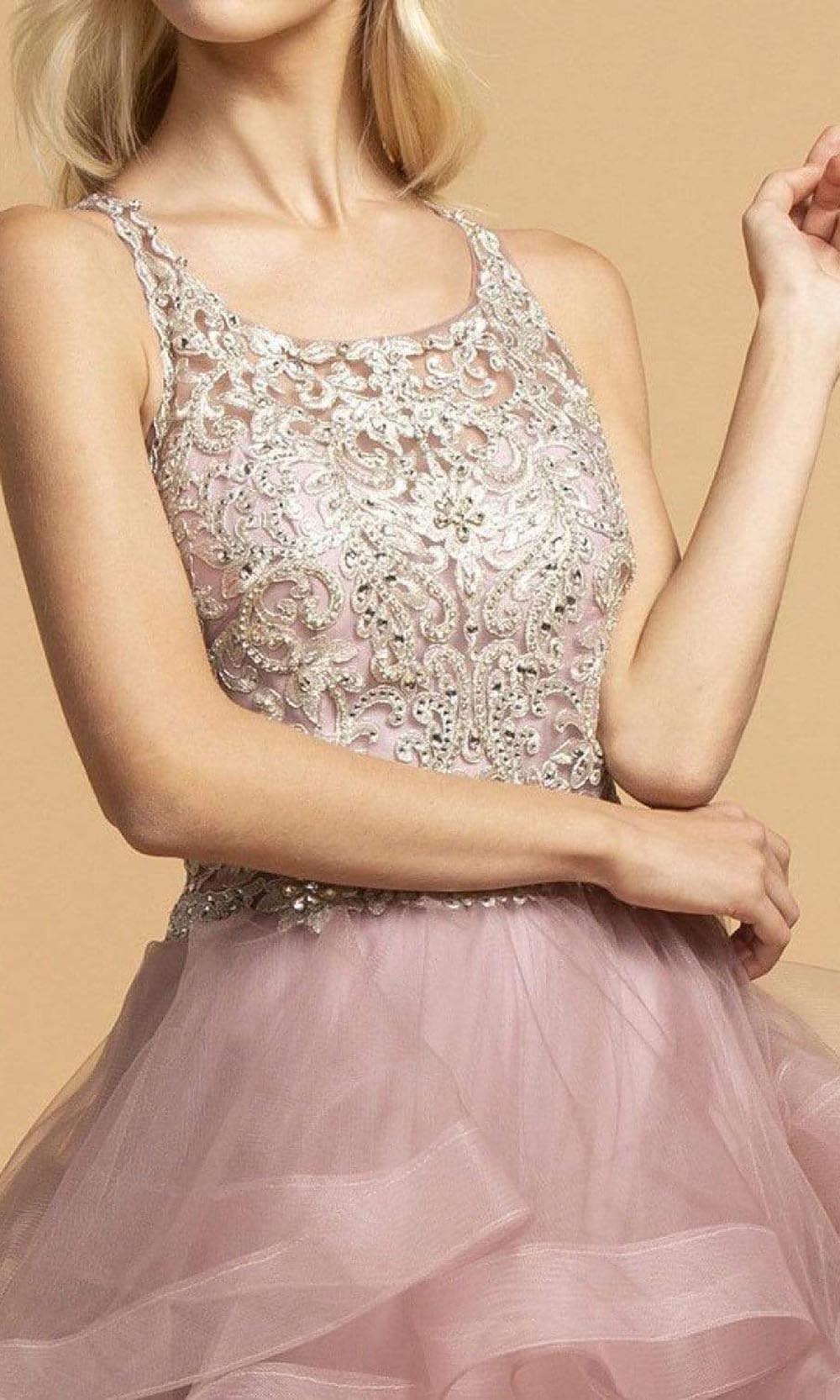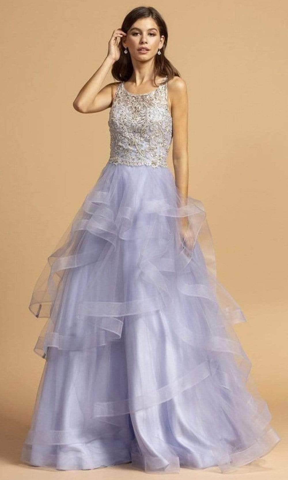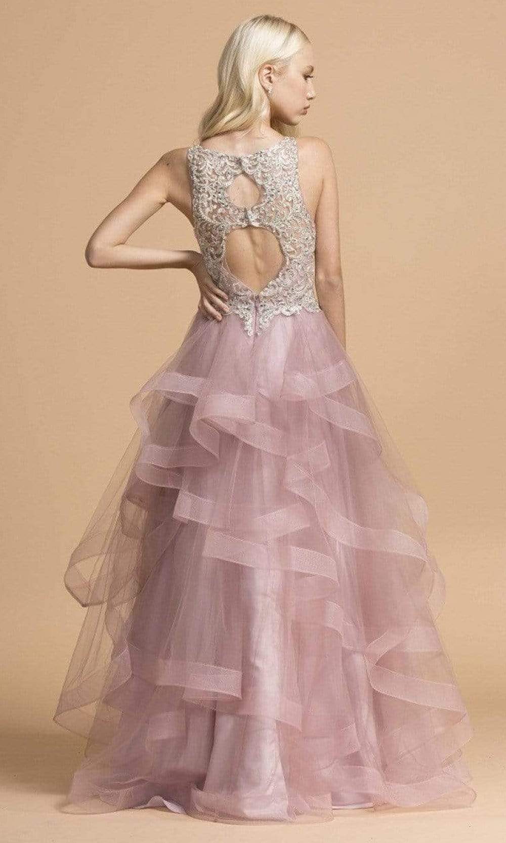 Claim your destiny to shine in this inspired Aspeed Design L2160 creation. Embellished with intricate beadwork and lace appliques, this stunner shows an illusion scoop neckline with a double cutout back. The tulle skirt ends with ruffled horsehair hems that flows to the floor. Lavish in wonder as all eyes focus on you in this Aspeed Design masterpiece.