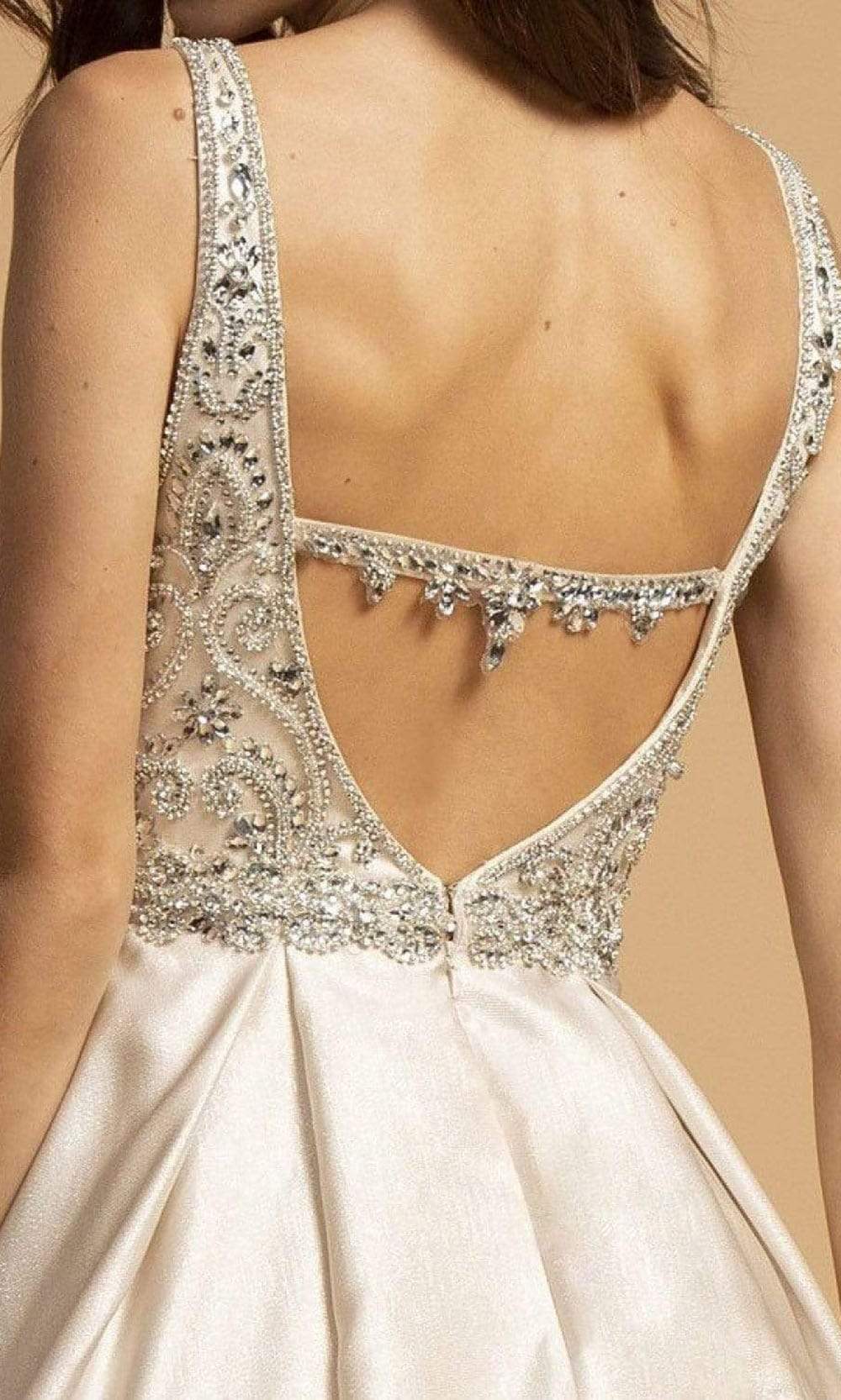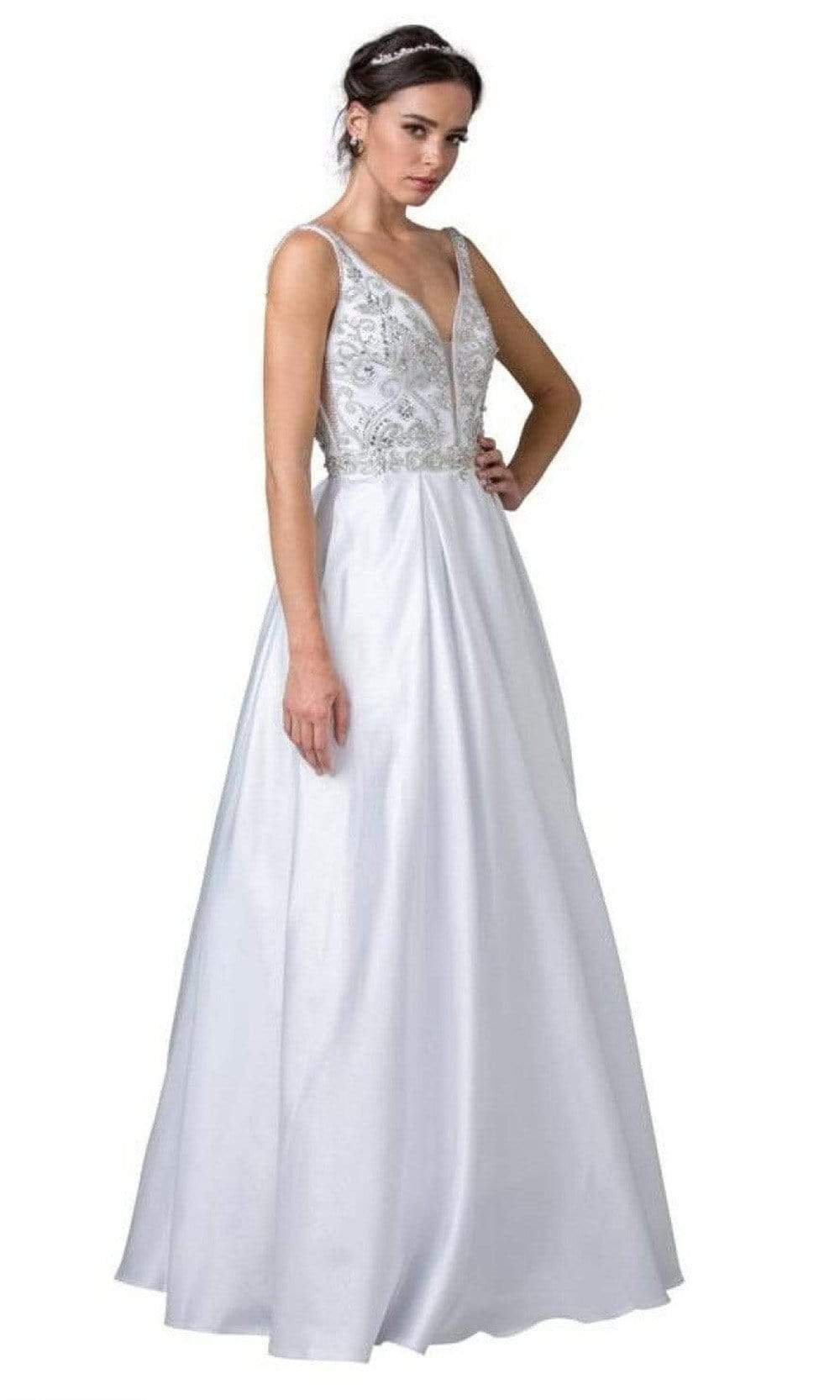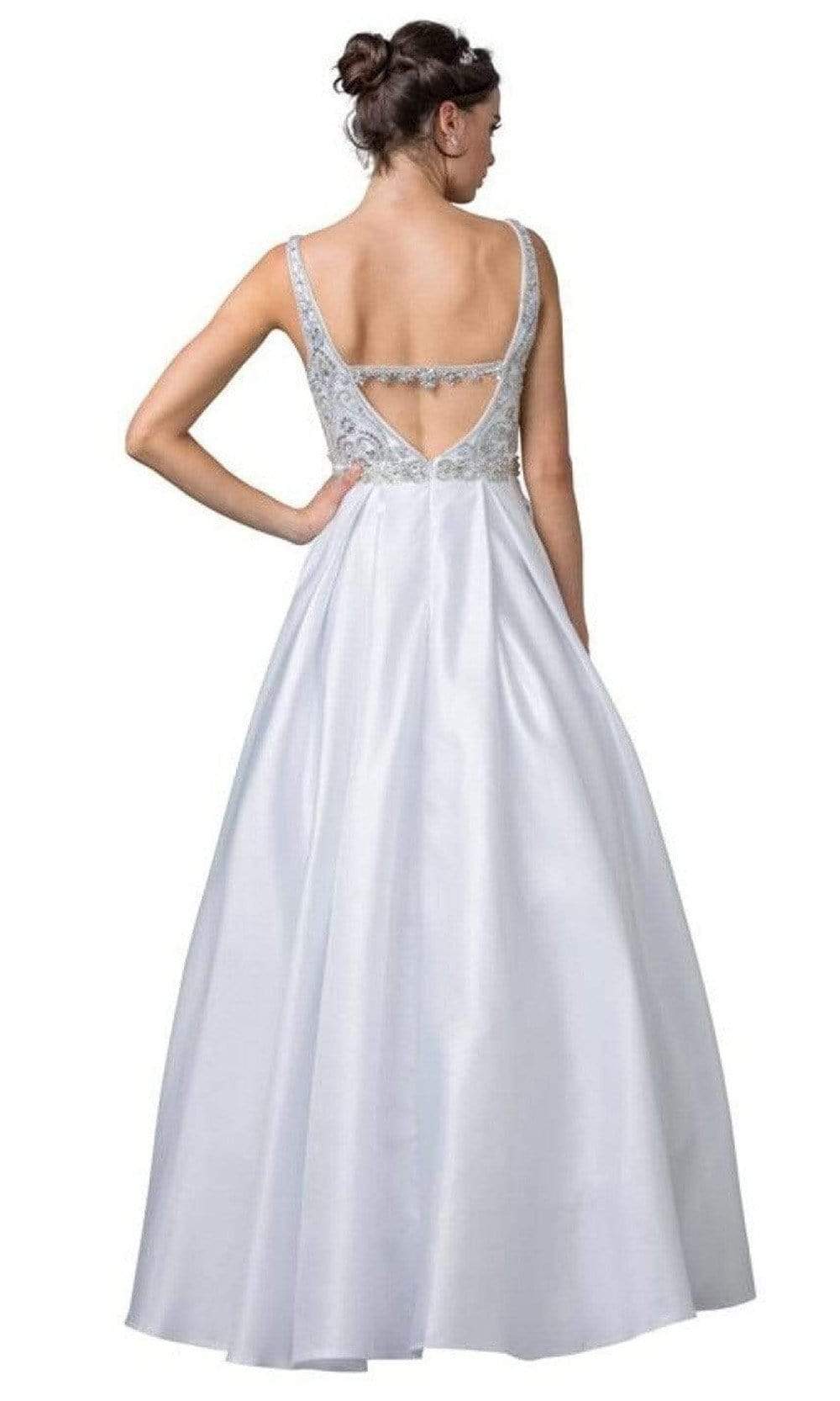 | Details: | Satin, Sleeveless, Illusion Inset, Rhinestones, Cutout Back, Pockets, Full Length Hem |