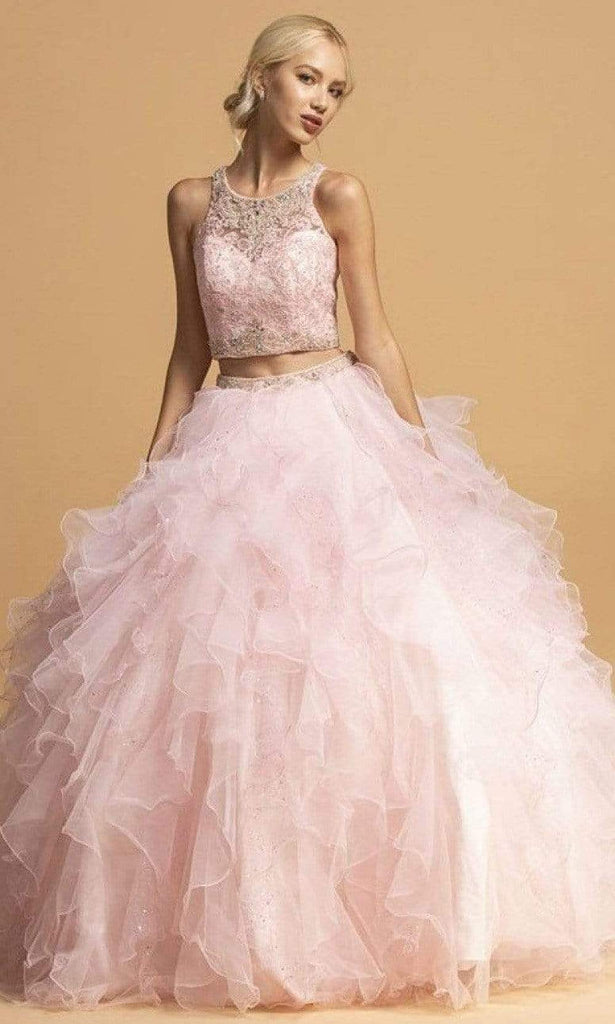 Aspeed Design L2272 ball gown is a charming choice for your next special occasion. This gown highlights an illusion jewel neckline in a beaded bodice and ruffled skirt. The back also reveals a back keyhole with back zipper closure to complete the look. Enter the party and do that walk of a regal beauty in this Aspeed Design creation. Model is wearing Pink color.