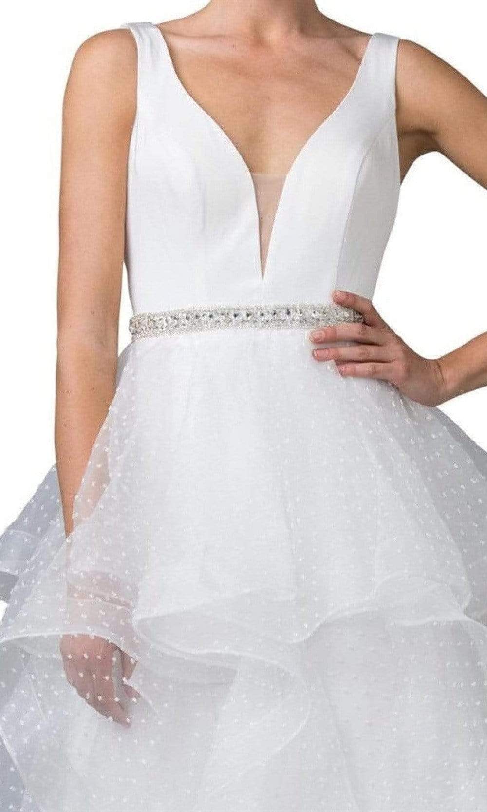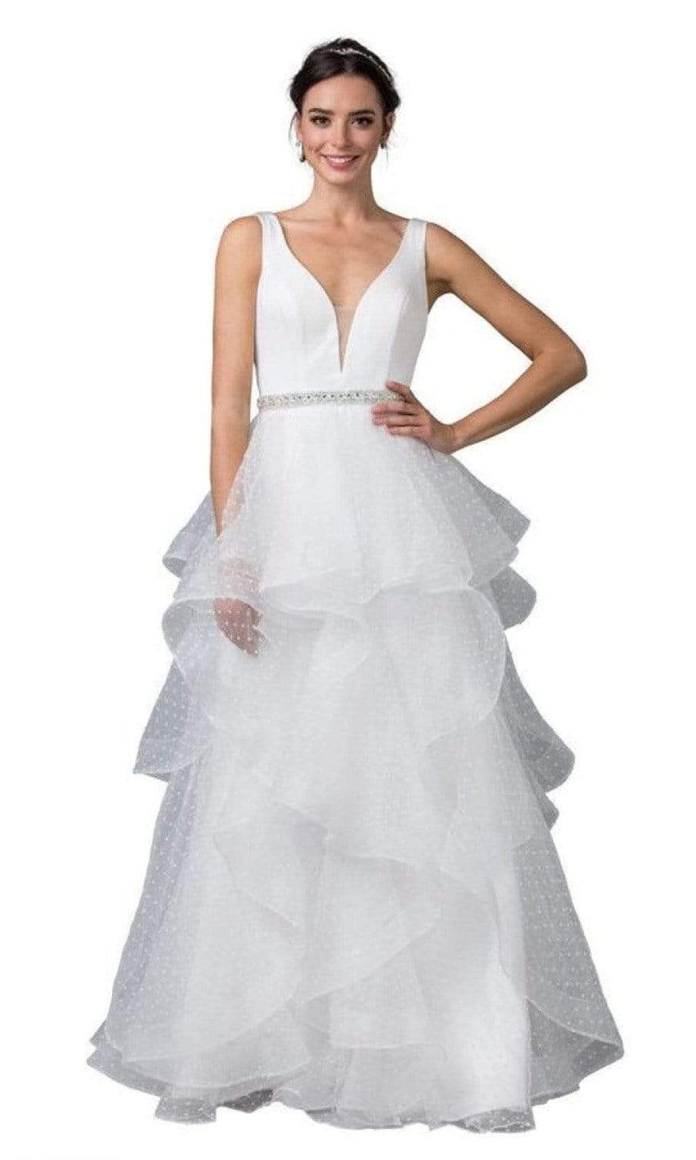 Aspeed Design - L2296 Deep V-Neck Tiered A-Line Dress