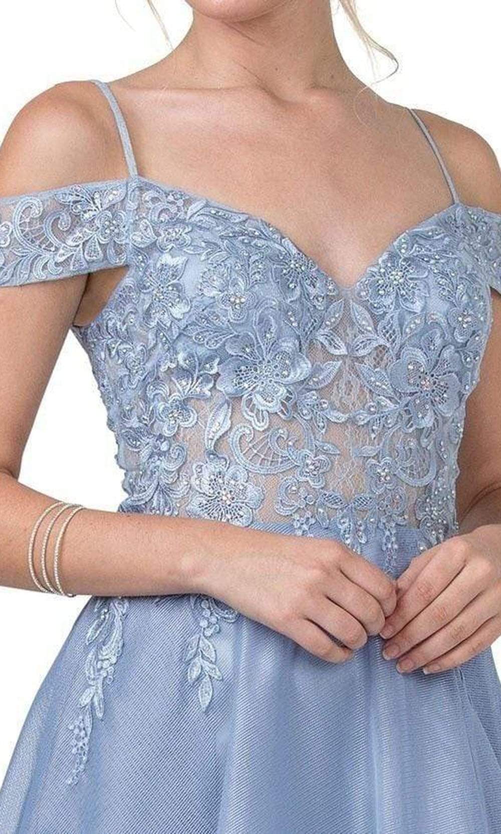| Details: | Organza/Lace, Cold Shoulder, Pockets, Lace Appliques, Beaded, Illusion Inset, Lace Up Cutout Back, Zipper Closure, High Slit, Sweep Train |