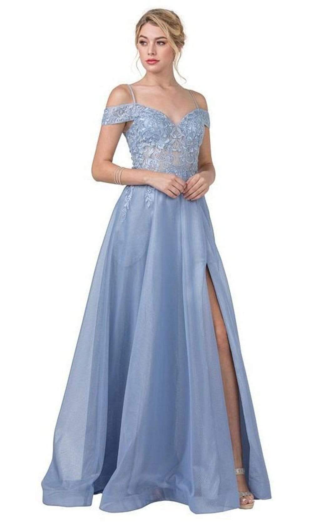 Saunter into the ballroom and charm everyone in this fascinating Aspeed Design L2361 creation. Embroidered with floral lace and sprinkled with jewels, the bodice reveals an off shoulder neckline with a cold shoulder detail. The back reveals a cutout and a lace up bandeau strap. The skirt opens with a high slit as it cascades into a sweep of train. Make a lasting impression as you flaunt this Aspeed Design masterpiece.