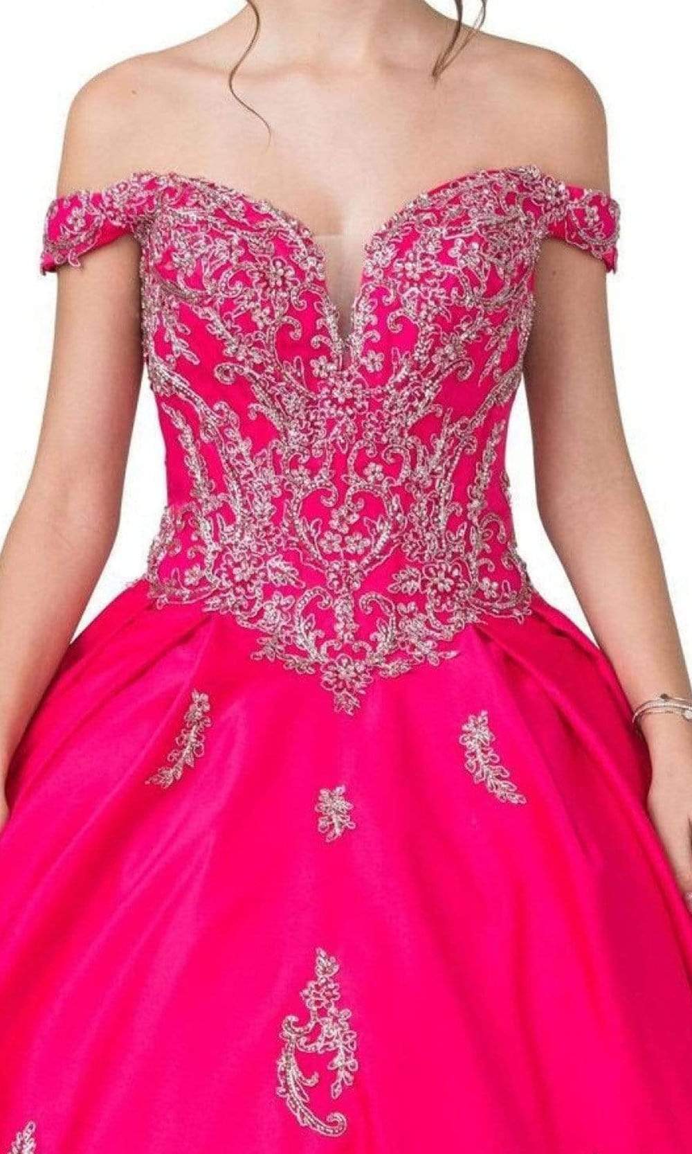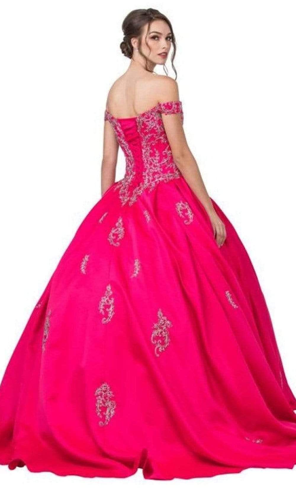 Aspeed Design L2363 evening dress definitely parades the elegant and classy style. This dress showcases an off shoulder neckline in an appliqued bodice. Revealing a basque waistline, this also shows a mid-open back with lace up back closure. Wear this Aspeed Design creation to complete the look for your upcoming event.