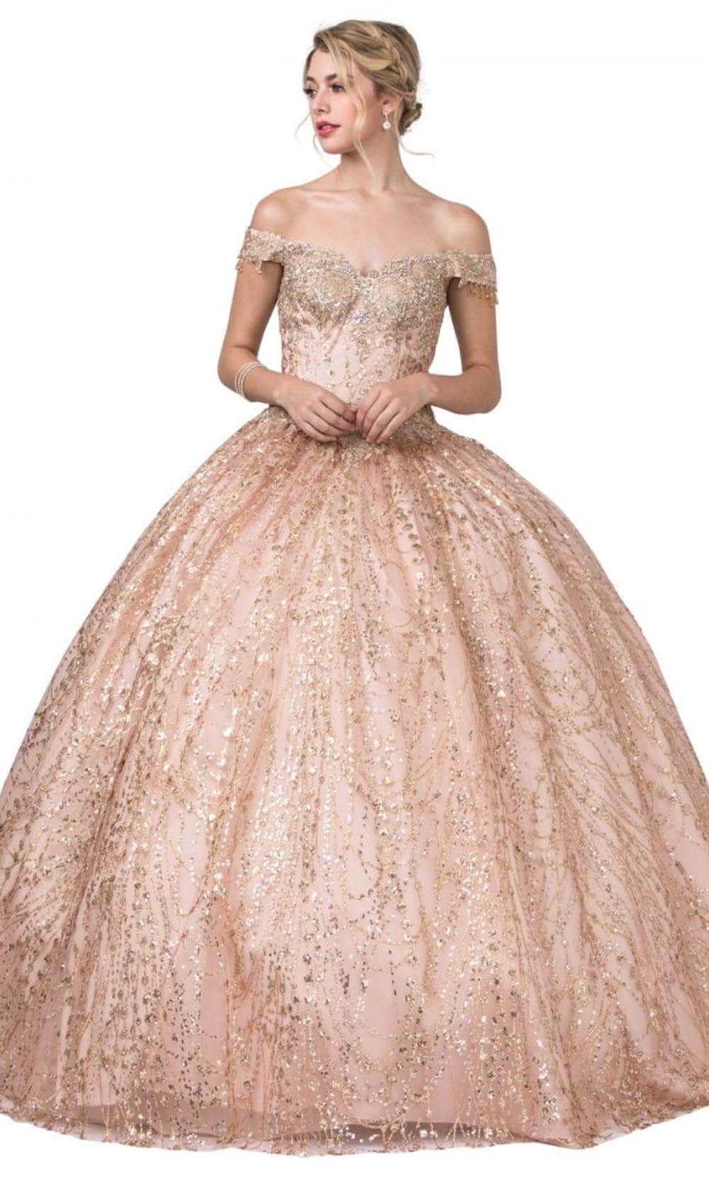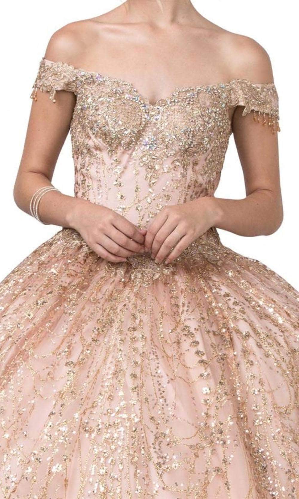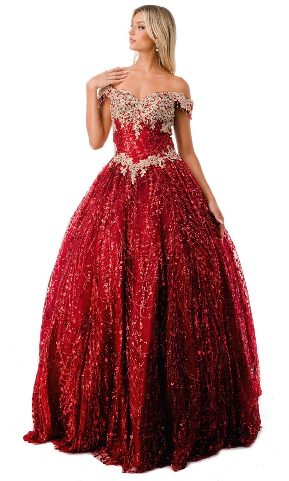 Be a queen of your own right in this remarkable gown by Aspeed Design L2364. Fabulously embellished with lace applique and glittering beads, this gown is sure to be a show-stopper. The off-shoulder sweetheart neckline has cap sleeves with playful beaded fringes. Skin is displayed at the back with its mid-open detail, and it is secured by an adjustable lace-up tie closure. From the basque waist, the skirt forms a voluminous ballgown silhouette that gorgeously glides to the floor and sweeping train. This Aspeed Design L2364 creation gives you an intricate look that will last a lifetime. Models are wearing the Burgundy, and Rosegold colors.