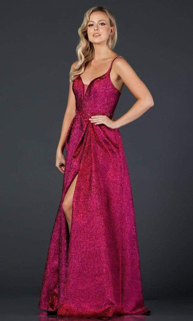Aspeed Design - L2370 Thin Straps Plunging V-Neck A-Line Dress