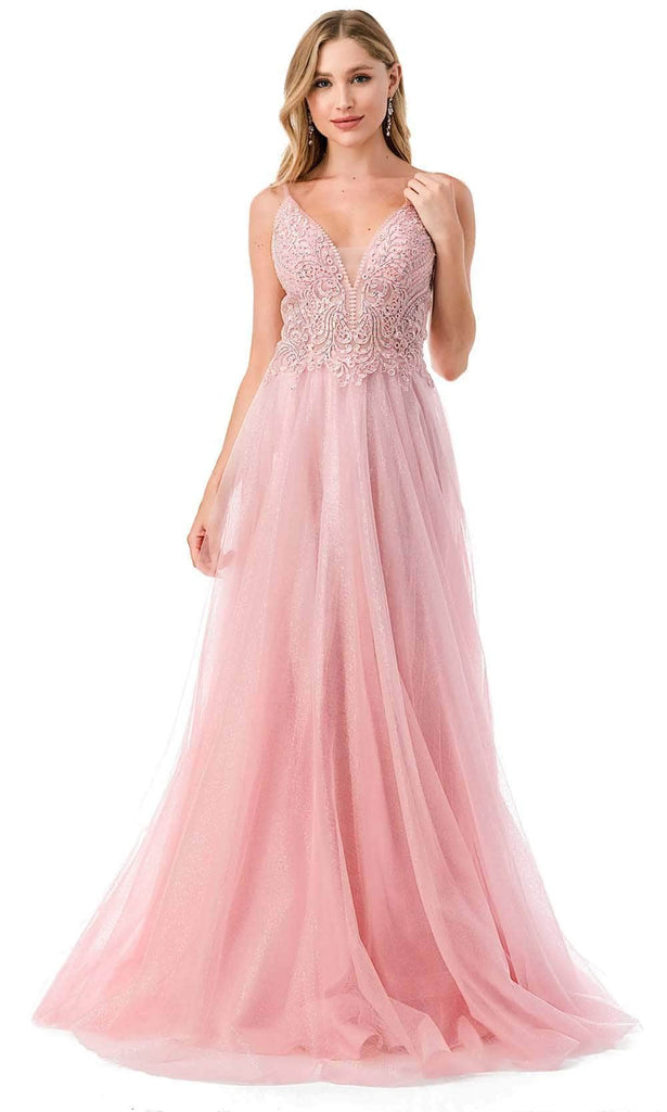 Get camera-ready and embrace the spotlight with this breathtaking Aspeed Design L2688 creation. Stylishly detailed with embroidered lace appliques accented with glittering rhinestones, this stunner flatters with a v-neckline and an illusion overlay. Stringed with spaghetti straps that trail down the bodice and the deep v-open back, the ethereally layered skirt forms an A-line silhouette as it cascades to the floor with a sweeping denouement. Be caught off guard by the spectacular allure of this Aspeed Design L2688 masterpiece. Models are wearing the Blush and Light Blue colors.