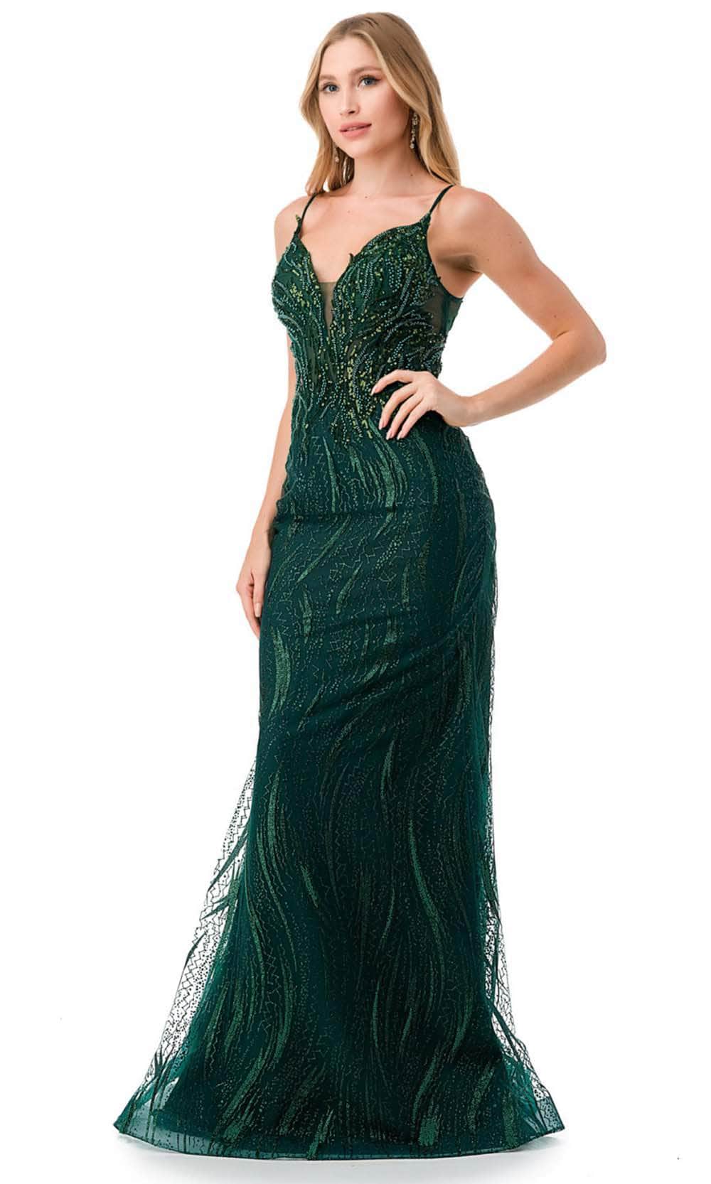 Orchestrate a moment for you to shine in this exquisite Aspeed Design L2719 creation. Stunningly embellished with shimmering rhinestone details crusting the semi-sheer bodice, this stylish piece parades spaghetti straps trailing down into a plunging v-neckline with a tonal illusion inset. Defined with a deep v-open styled back, the mermaid skirt embraces the female form with exquisite precision as it trails into a sweeping denouement. Be caught off guard by the spectacular allure of this Aspeed Design L2719 masterpiece. Model is wearing the Hunter Green color.
