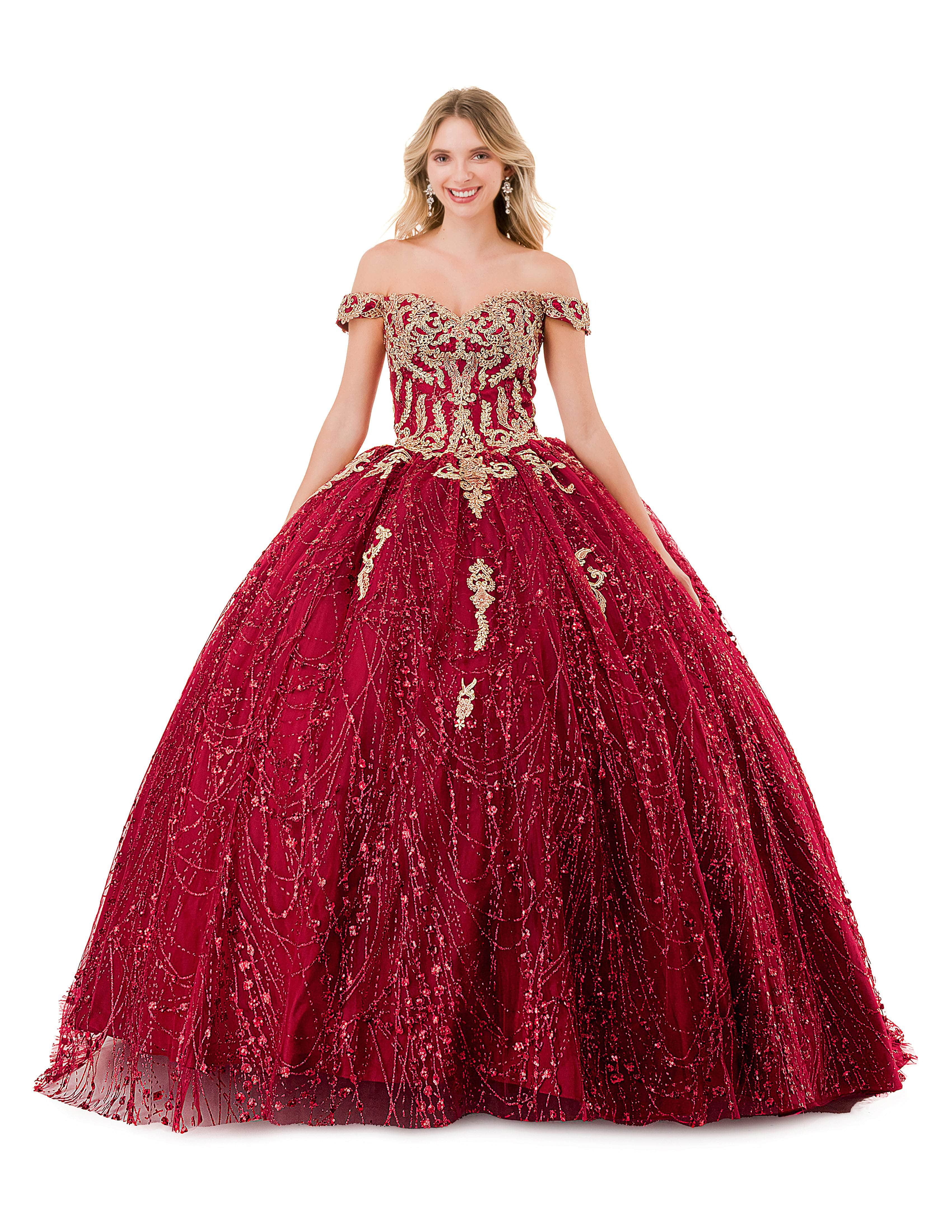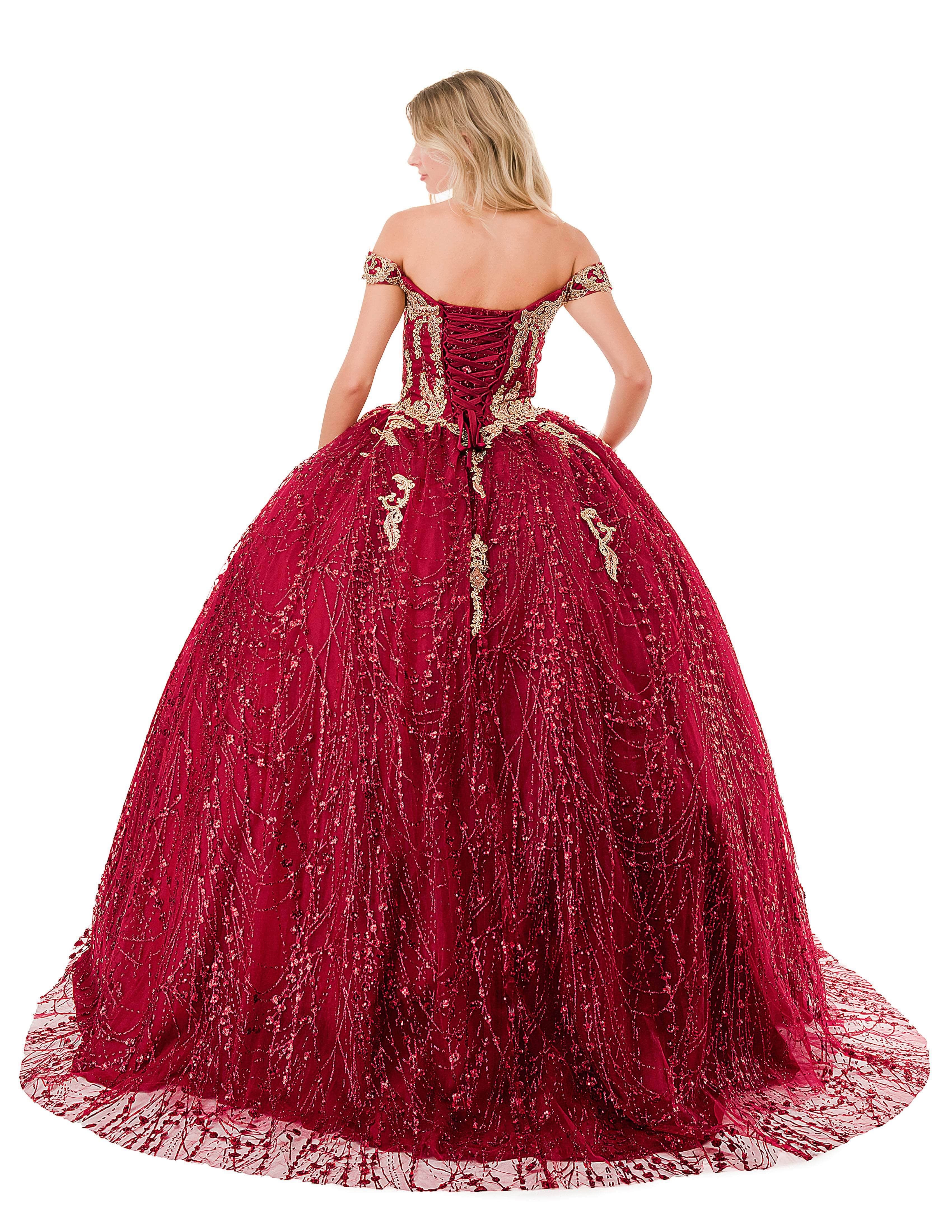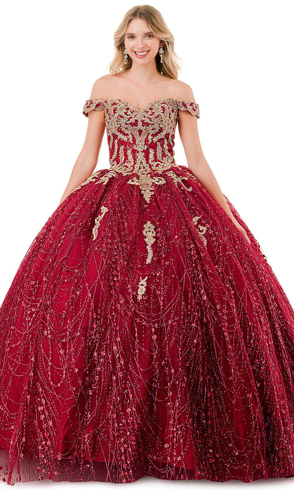 Get ready to make memories in this wonderful creation from Aspeed Design L2753T. Captures and reflects light, this gown is adorned with luxurious glitters and beaded lace appliques. The sweetheart off-shoulder neckline creates a sophisticated look, while the mid-style in the back unveils a peek of your skin. It also includes a lace-up tie closure for a snug and great fit. The pleated skirt cascades down to the floor in a ballgown silhouette and ends with the dramatic flair of the sweeping train. Feel like royalty and immerse yourself in the enchantment of a princess with the Aspeed Design L2753T gown. Models are wearing Burgundy, and Rosegold colors.