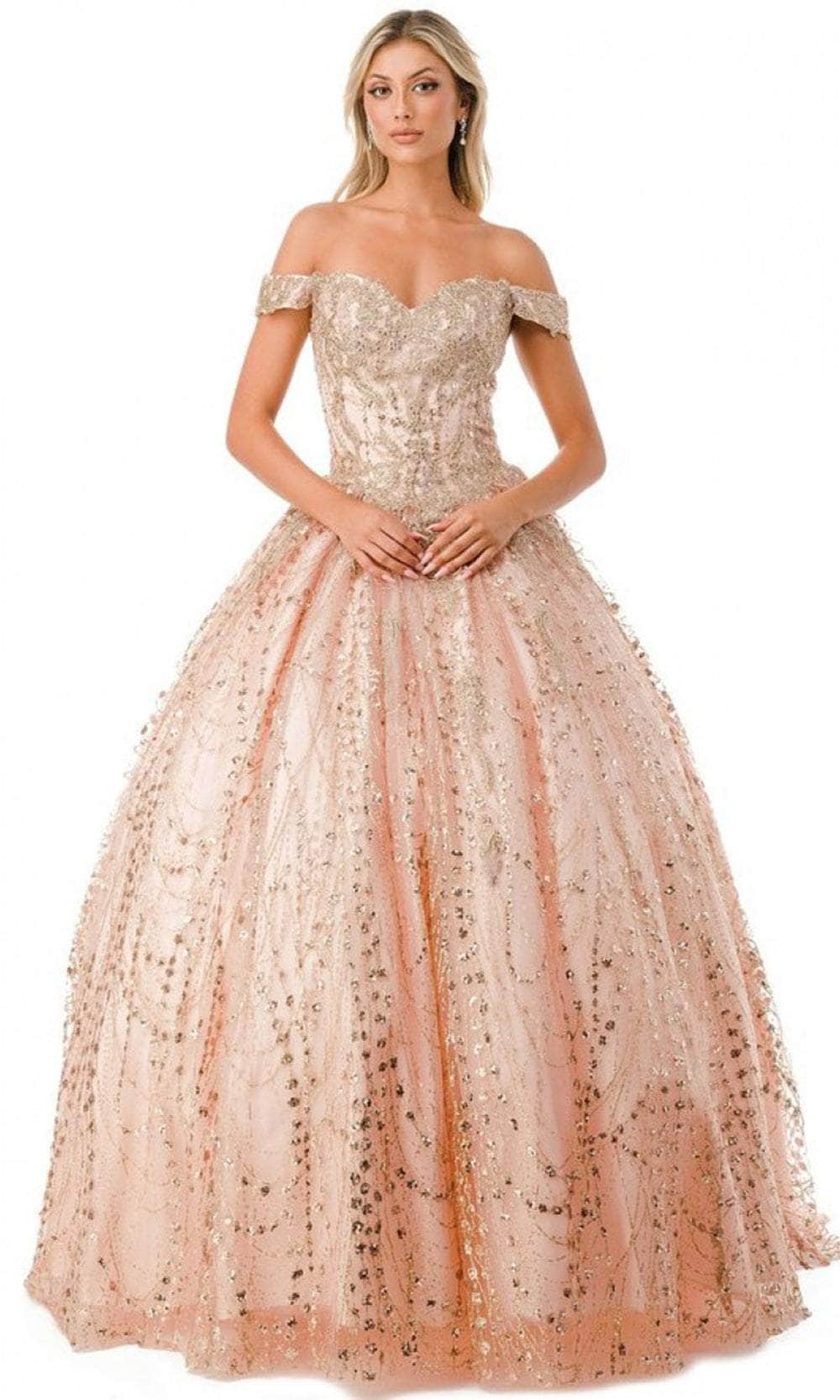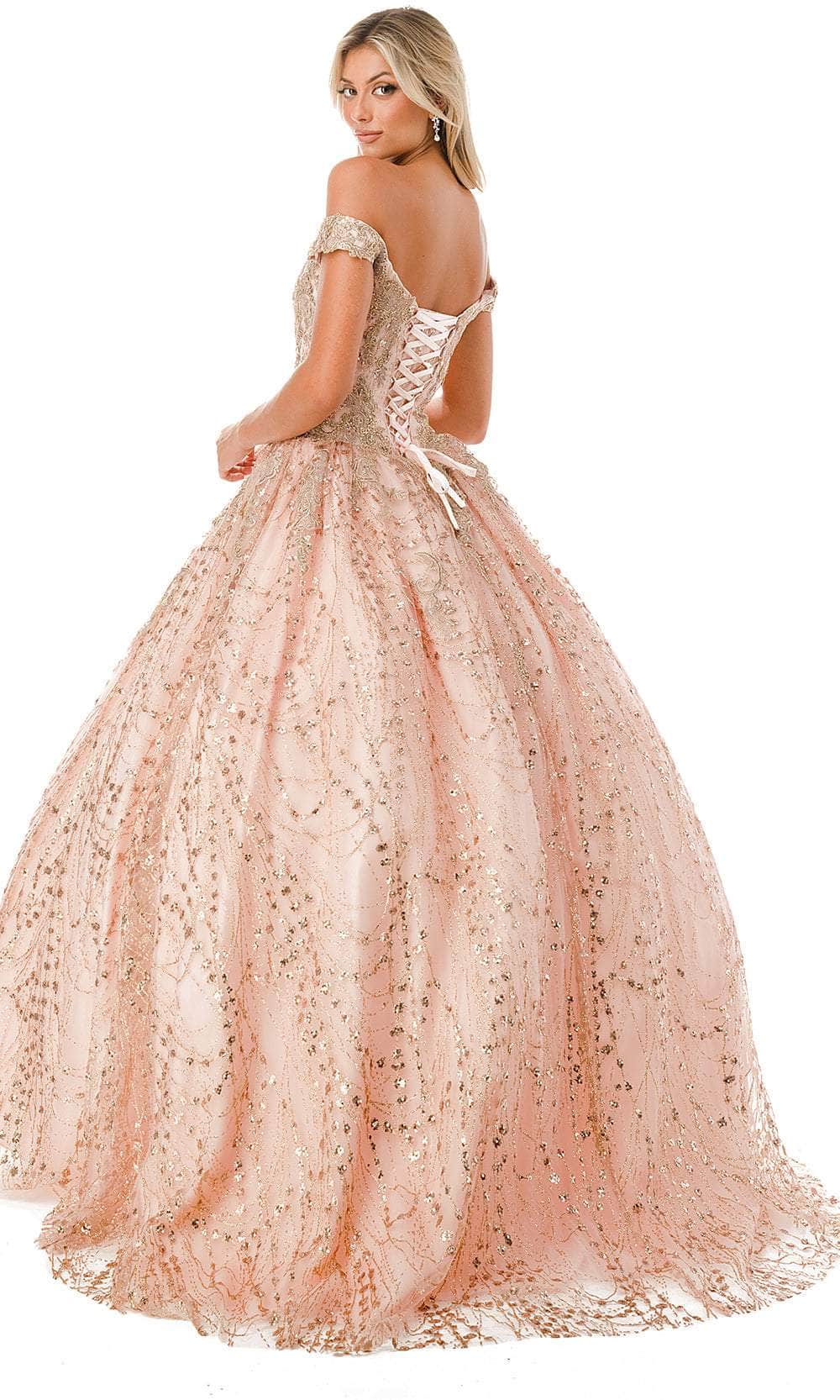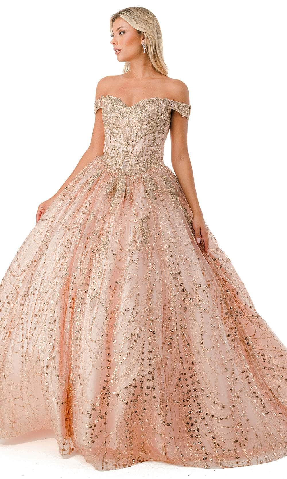 Get ready to make memories in this wonderful creation from Aspeed Design L2753T. Captures and reflects light, this gown is adorned with luxurious glitters and beaded lace appliques. The sweetheart off-shoulder neckline creates a sophisticated look, while the mid-style in the back unveils a peek of your skin. It also includes a lace-up tie closure for a snug and great fit. The pleated skirt cascades down to the floor in a ballgown silhouette and ends with the dramatic flair of the sweeping train. Feel like royalty and immerse yourself in the enchantment of a princess with the Aspeed Design L2753T gown. Models are wearing Burgundy, and Rosegold colors.