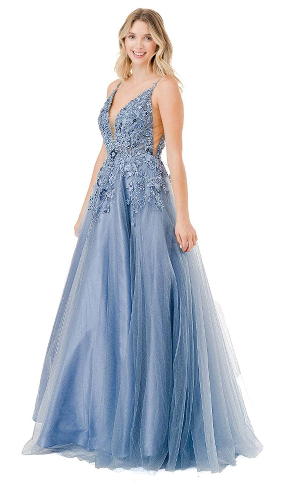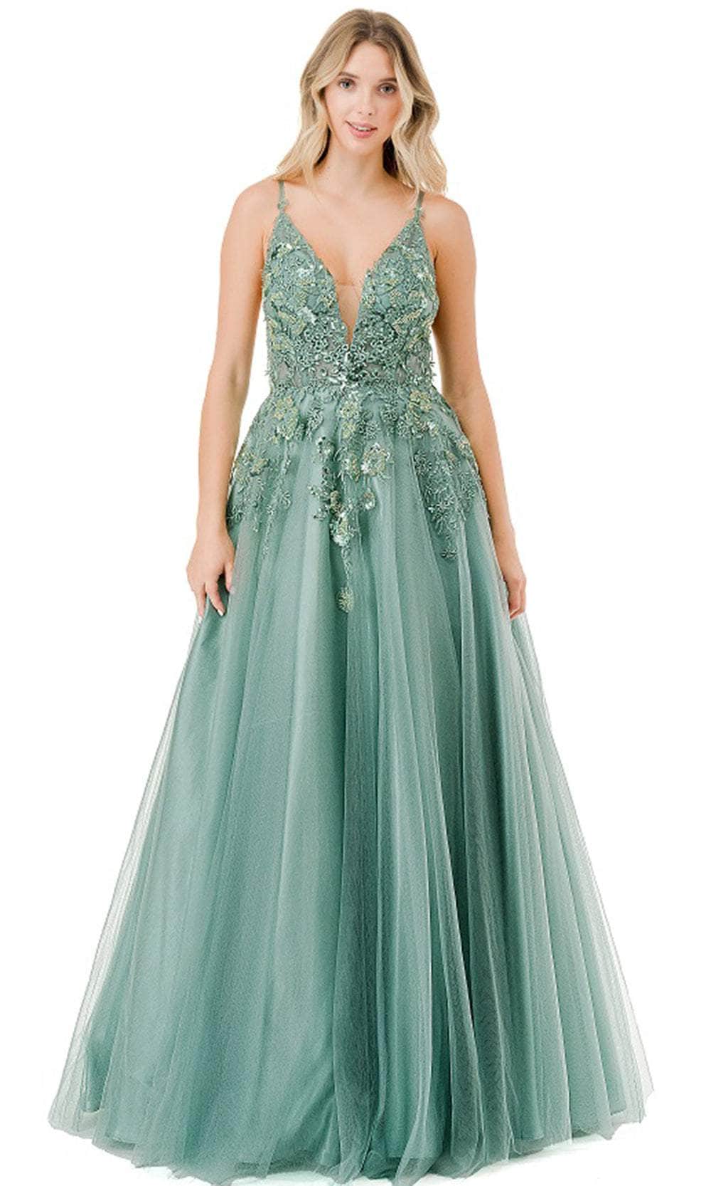 Make a statement at any special event in the Aspeed Design L2811T masterpiece. This breathtaking gown is sleeveless, and features a plunging v-neckline held together by the spaghetti straps. It is ornamented with lace appliques and shimmering beadwork. The back has striking details of scoop cut and crisscross lace-up closure. The illusion panel in the bust and side waist adds a touch of allure. Flowing beautifully to the full-length hem, the skirt is styled in an A-line silhouette that is an ideal choice for all curves. This Aspeed Design L2811T is sure to draw attention. Models are wearing Hunter Green, Sage, and Smoky Blue colors.