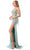 Step into a world of enchantment with this Aspeed Design L2812T creation. Gorgeously adorned with beaded floral appliques on the sheer corset-style bodice, this stunner creates a breathtakingly beautiful design with delicate spaghetti straps and off-shoulder neckline with an illusion overlaid plunge. Designed with sheer ornate drape sleeves accenting the arms, this ensemble features a lace-up back ensures a perfect fit. The embellished mermaid skirt shimmers with every step as an floral adorned illusion panel graces atop the high slit as it flows to the floor with a sweep. Embrace the magic and radiate timeless beauty in the Aspeed Design L2812T masterpiece. Models are wearing the Mint color.