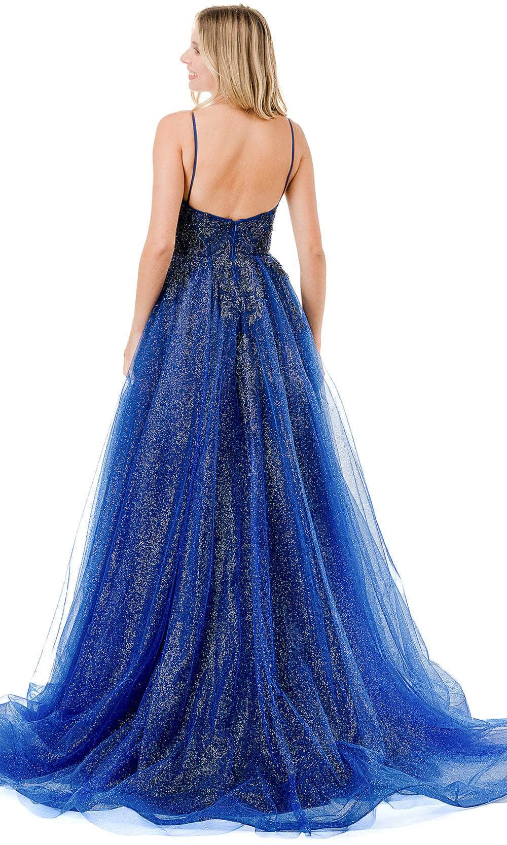 Heighten the allure of any special occasion in this Aspeed Design L2846B masterpiece. Fashioned in glitter fabric with beadwork and lace appliques, this sleeveless ensemble is the epitome of elegance and style. The sweetheart neckline frames your face beautifully, while the spaghetti straps fall to the sultry open back. For structural support and fit, it displays a visible boning on the corset bodice. The skirt is fascinatingly layered and forms into an A-line silhouette. A sexy thigh-high slit and sweeping train with horsehair hem complete this ensemble. Make your night one to remember with the timeless beauty of this Aspeed Design L2846B gown. Models are wearing Mint, and Navy colors.