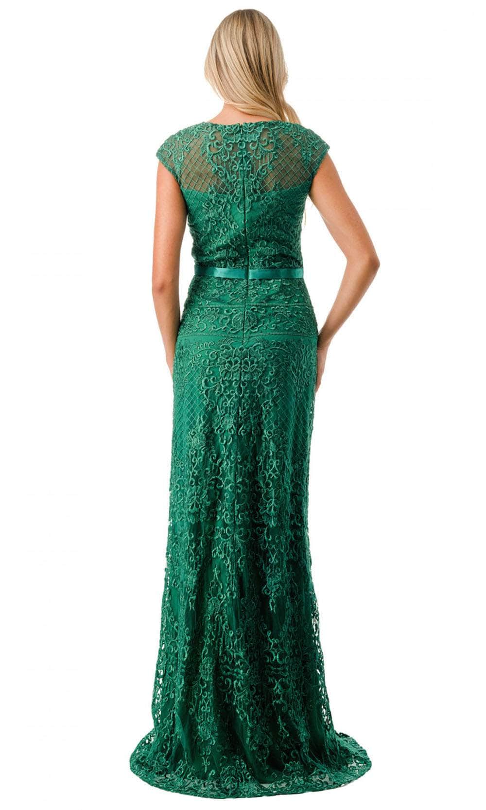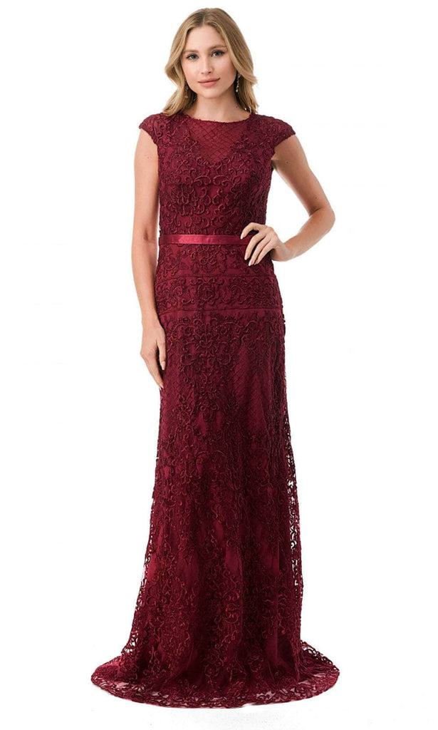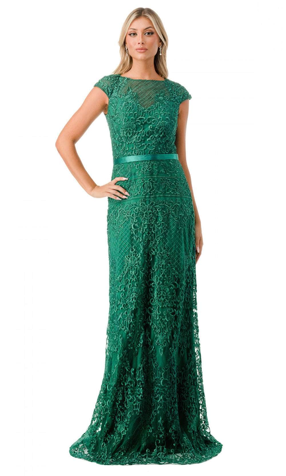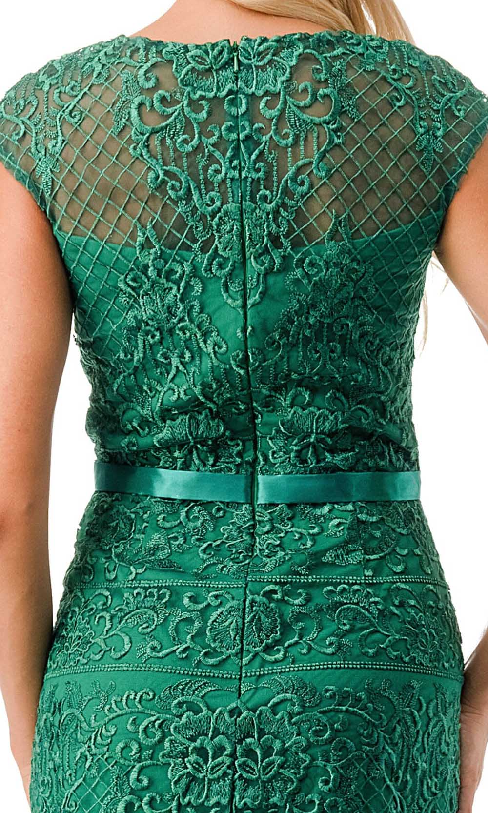 Experience the epitome of elegance while gracing the stunning event in this Aspeed Design M2732 creation. Delicate scroll motif embroidery adorns this enchanting piece, showcasing exquisite craftsmanship and attention to detail. Accented with semi-sheer cap sleeves framing the jewel neck bodice, a tonal satin band accentuates your waistline for that perfect fit. A sheer full back perfectly complements the ensemble as it crafts an adorned sheath silhouette. A subtle trail of sweep train perfects this beauty. Embrace sophistication and radiate timeless beauty in the Aspeed Design M2732 masterpiece. Models are wearing the Burgundy and Emerald colors.