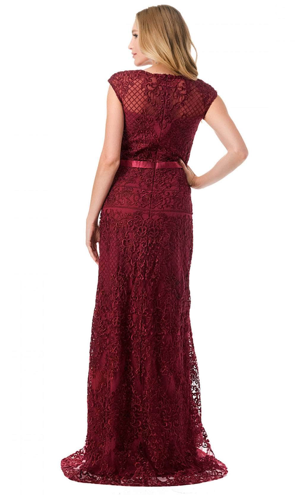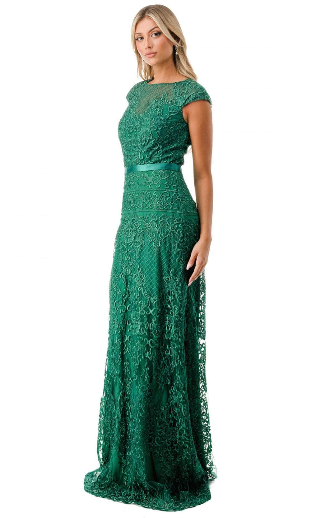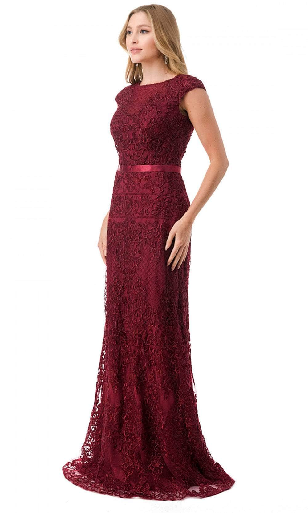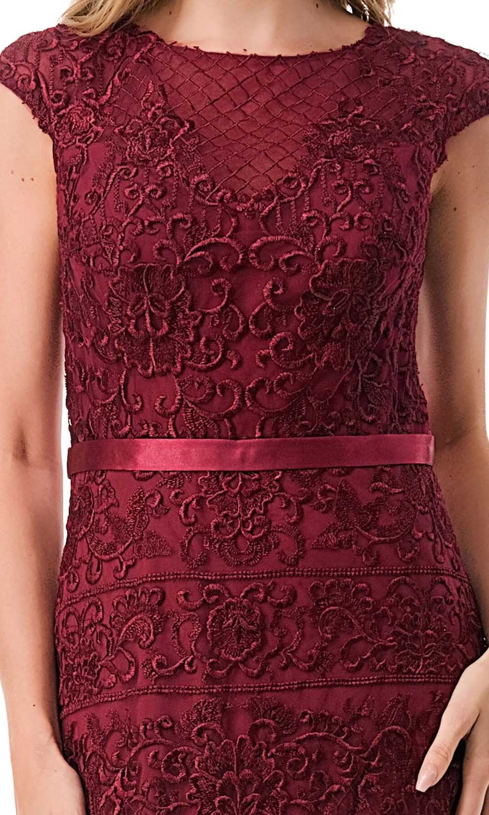 Experience the epitome of elegance while gracing the stunning event in this Aspeed Design M2732 creation. Delicate scroll motif embroidery adorns this enchanting piece, showcasing exquisite craftsmanship and attention to detail. Accented with semi-sheer cap sleeves framing the jewel neck bodice, a tonal satin band accentuates your waistline for that perfect fit. A sheer full back perfectly complements the ensemble as it crafts an adorned sheath silhouette. A subtle trail of sweep train perfects this beauty. Embrace sophistication and radiate timeless beauty in the Aspeed Design M2732 masterpiece. Models are wearing the Burgundy and Emerald colors.