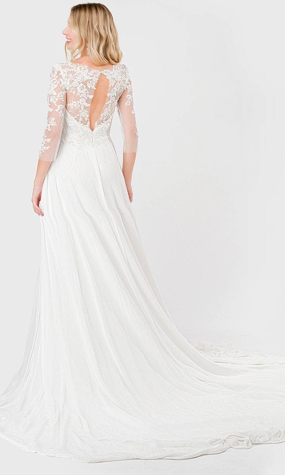 Flaunt your best assets while enthralling the crowd with this Aspeed Design MS0031, a sophisticated masterpiece adorned with intricate embroideries. This gown showcases sheer quarter sleeves and a bateau neckline that exude timeless elegance. The sweetheart notch adds a touch of femininity, while a keyhole detail at the back enhances its allure. The floor-length skirt, complete with convenient side pockets, flows gracefully in an A-line silhouette, culminating in a sweeping train. Ideal for any special occasion, this Aspeed Design MS0031 combines classic charm with modern sophistication for an unforgettable look. Model is wearing Off-White color.