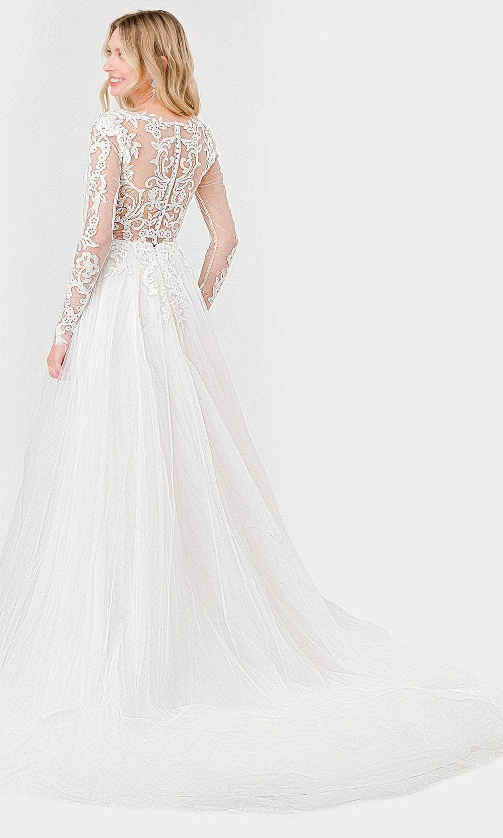 Display your best attributes and captivate the audience with this elegant Aspeed Design MS0032, an enchanting masterpiece adorned with delicate embroideries. This gown features sheer long sleeves and a bateau neckline that exude sophistication and grace. The sheer back is elegantly detailed with buttons for a timeless touch. The floor-length skirt flows elegantly in an A-line silhouette, offering effortless movement and concluding with a sweeping train. Perfect for elegant affairs, this Aspeed Design MS0032 combines intricate detailing with classic design elements, ensuring a memorable presence at any special occasion. Model is wearing Off-White color.