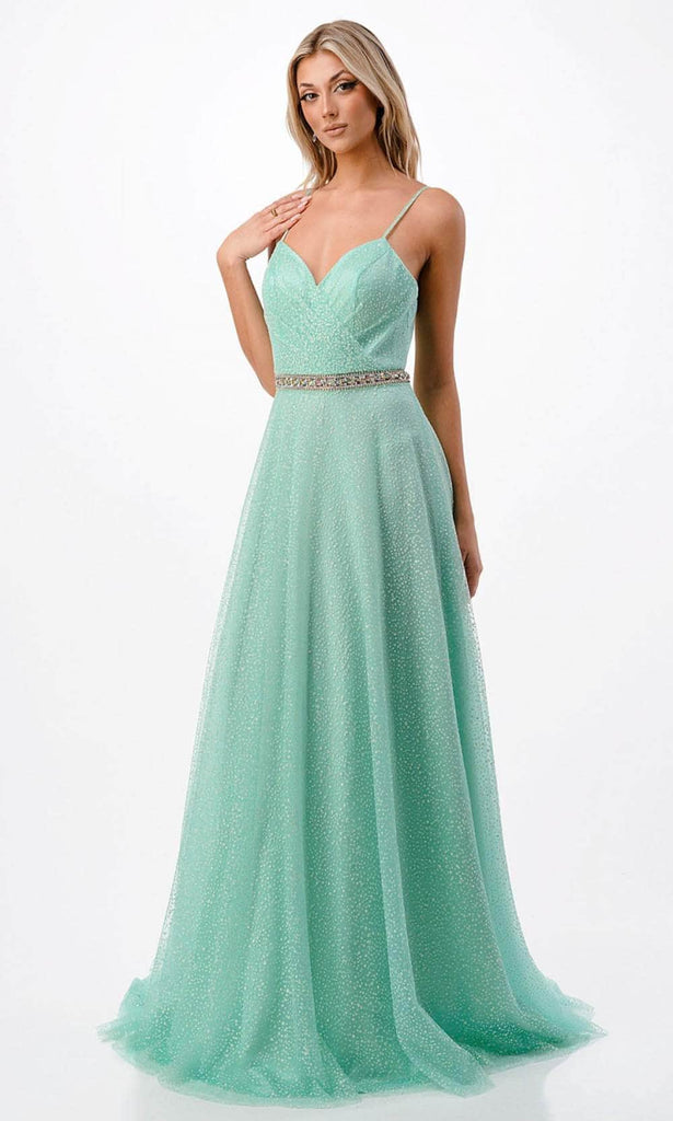 Sparkle with gorgeousness as you saunter in this Aspeed Design P2105 creation. All eyes will be on you in this sleeveless gown embellished with beadings throughout its length. It has an alluring surplice bodice with a sweetheart neckline, spaghetti straps and a zipper closure at the midrise back. Defined with a beaded embellished belt, the skirt beautifully moulds an A-line silhouette and spills into a sweeping train. Be ready to mesmerize the night in this Aspeed Design P2105 masterpiece. Models are wearing the Light Aqua, Orange, and Yellow colors.