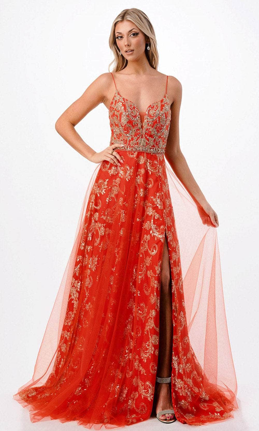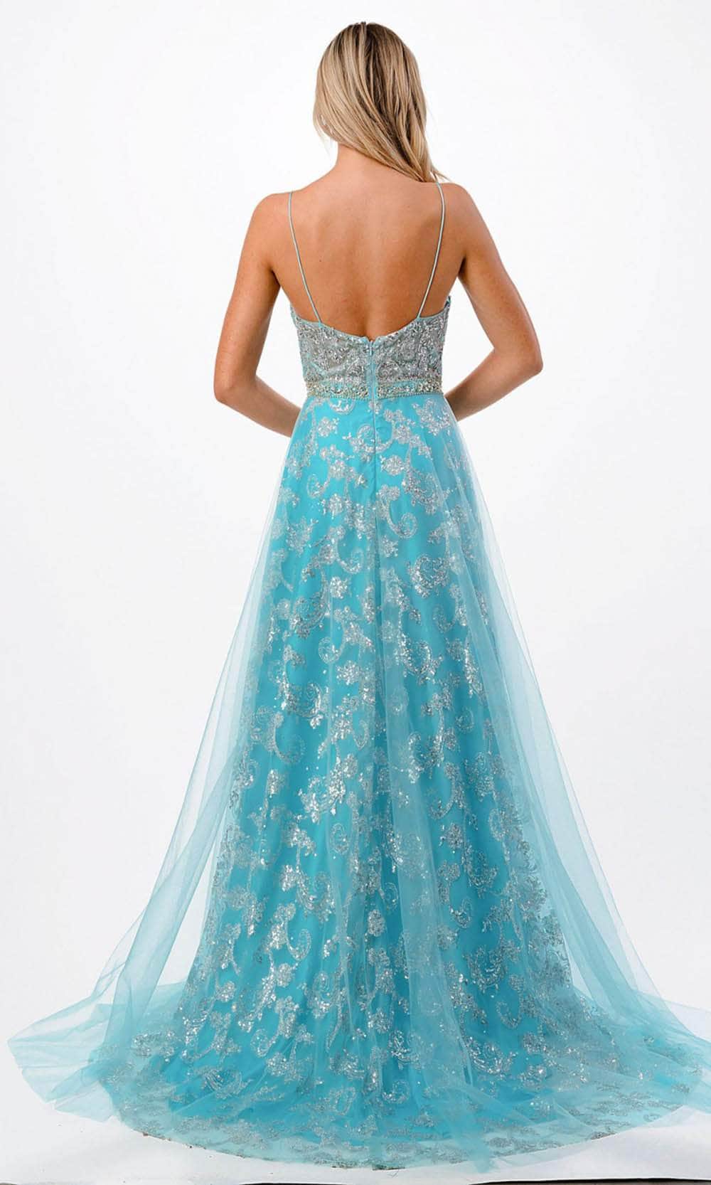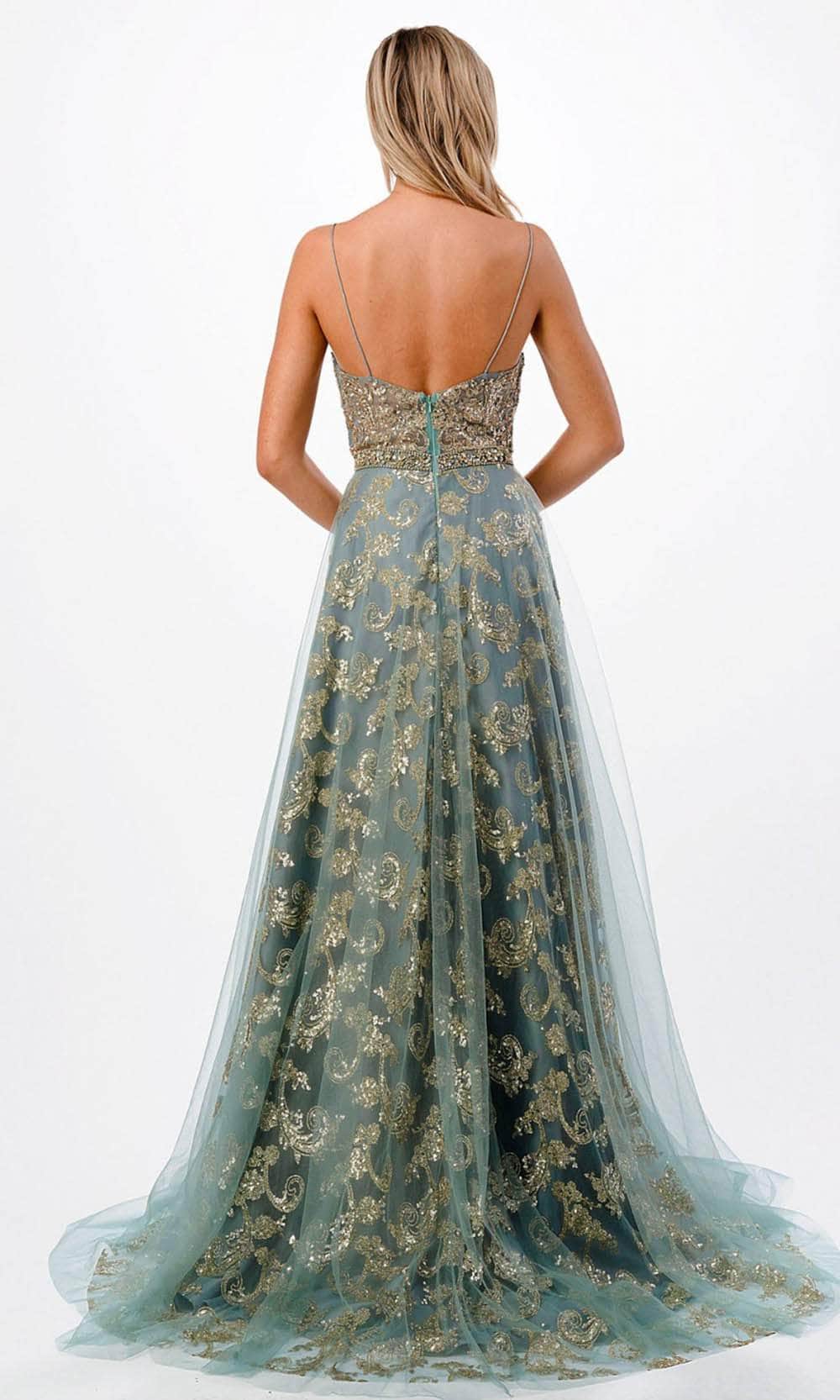 Channel red carpet glamour wearing this Aspeed Design P2203 masterpiece. Intricately festooned with shimmering sequins and beadwork, this sleeveless style will stand out from the crowd at any event. It boasts a plunging v-neckline with illusion inset detail at the bust, spaghetti straps, and a daring low-cut back that shows a peek of skin. A beaded thin band makes your waist looks slimmer, while the skirt is moulded in an A-line silhouette that pools into a dramatic sweep train. A thigh-high leg slit adds a flirtatious and eye-catching touch. Be dressed up beautifully by Aspeed Design P2203. Models are wearing the Light Aqua, Orange, and Slate Gray colors.